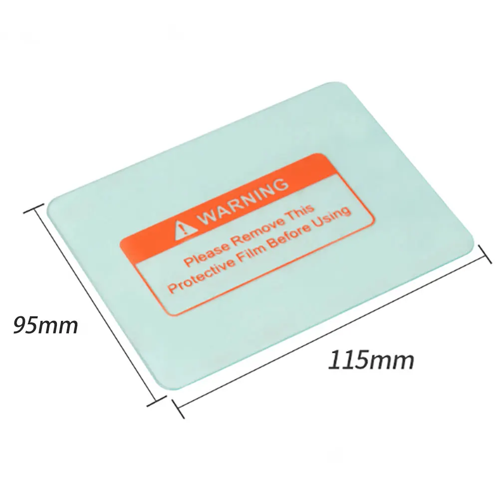- Available in four precise sizes—115mm x 95mm, 115mm x 90mm, 115mm x 85mm, and 108mm x 50mm—to fit various auto-darkening welding masks and protective gear models seamlessly.