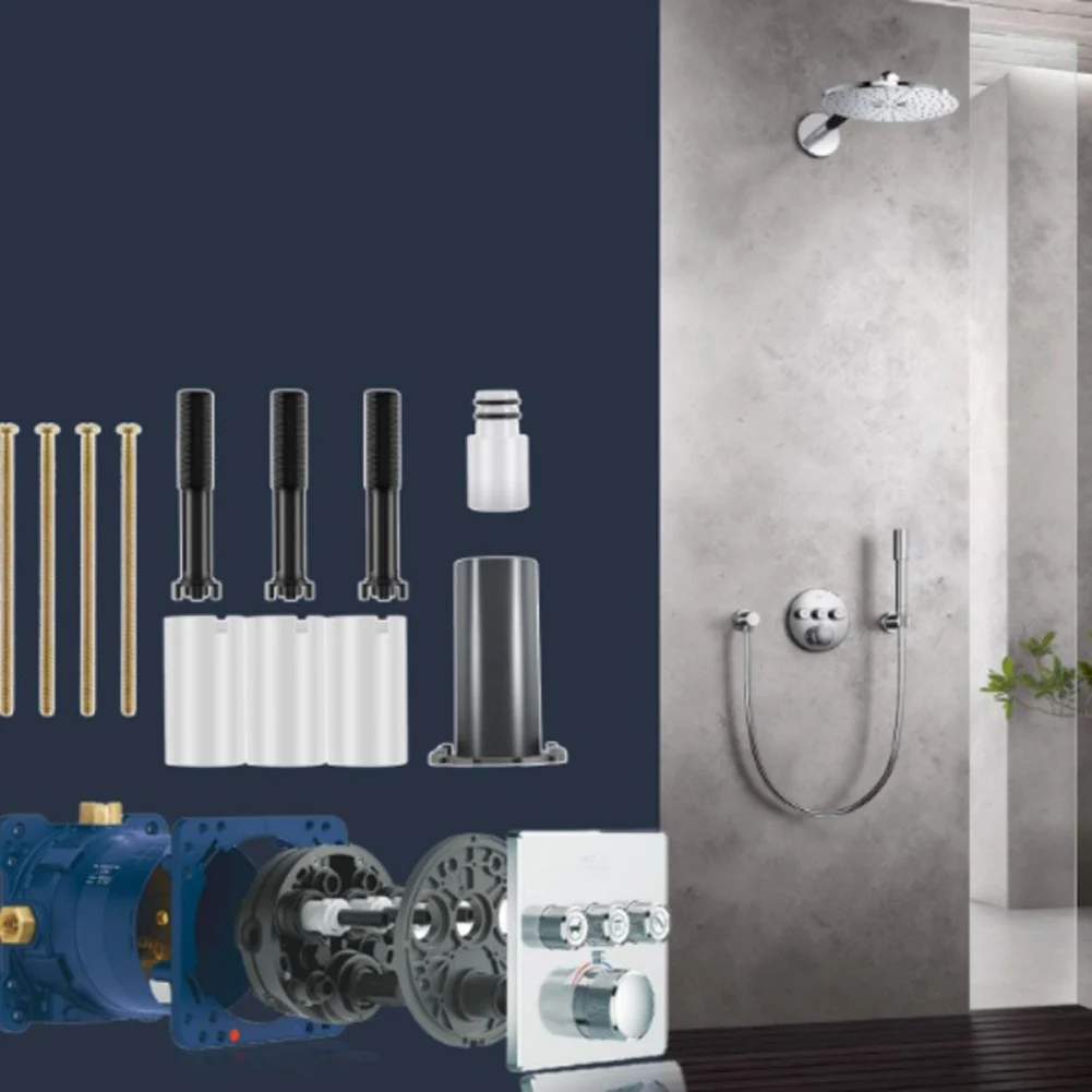 Experience enhanced flexibility with this stylish extension set designed for Grohtherm SmartControl and SmartControl Mixer systems. Crafted from durable materials, it features a sleek matte black connector and extension rods, contrasted by clean, white sleeves and a capped component with subtle cutouts. The elegant gold-tone screws add a sophisticated touch, ensuring both form and function. This set provides a precise 1-inch extension, making it easier to adapt your shower or bath system to your bathroom layout. Its modern design integrates seamlessly with existing fixtures, elevating your bathroom aesthetic while offering reliable performance and versatile installation options. Install it effortlessly for an upgraded shower experience built to last.