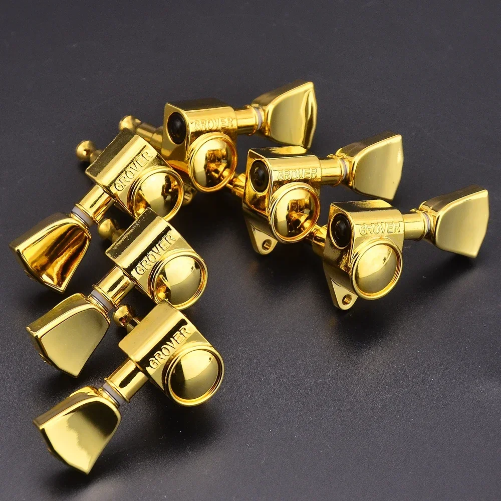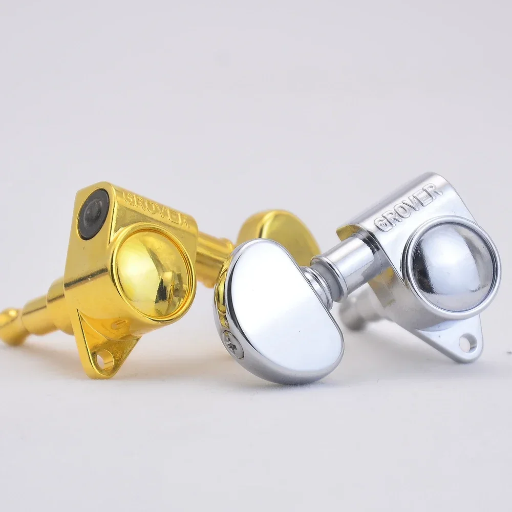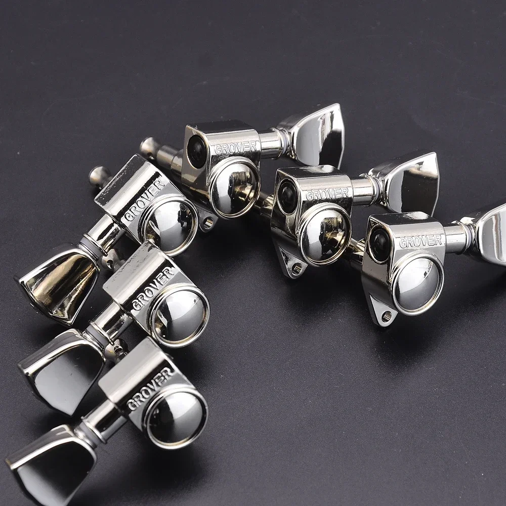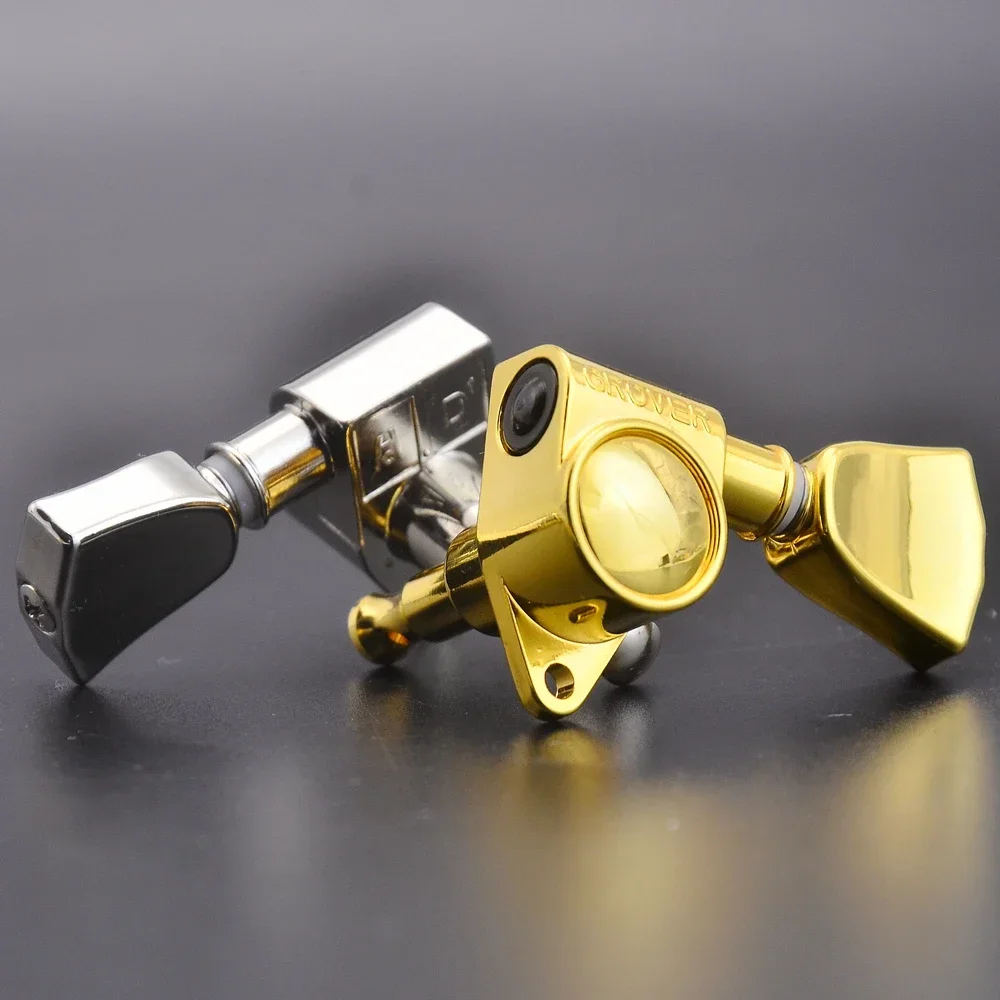Enhance your guitar’s performance with this set of two genuine Grover guitar tuners featuring a 1:18 gear ratio, crafted from durable metal and available in chrome, black, gold, nickel, and keystone finishes. Weighing approximately 280 grams, these precision-engineered tuning pegs are compatible with guitars requiring 3R-3L configurations and are suitable for a wide range of guitar models. Manufactured in South Korea, they offer high-quality, professional-grade tuning stability. Carefully inspected before shipping, this set ensures reliable, smooth tuning and enhances the aesthetic appeal of your instrument with its sleek finish. Perfect for upgrading or replacing existing tuning machines on your guitar.