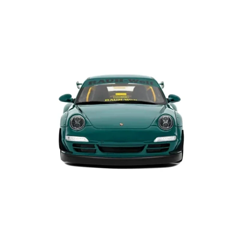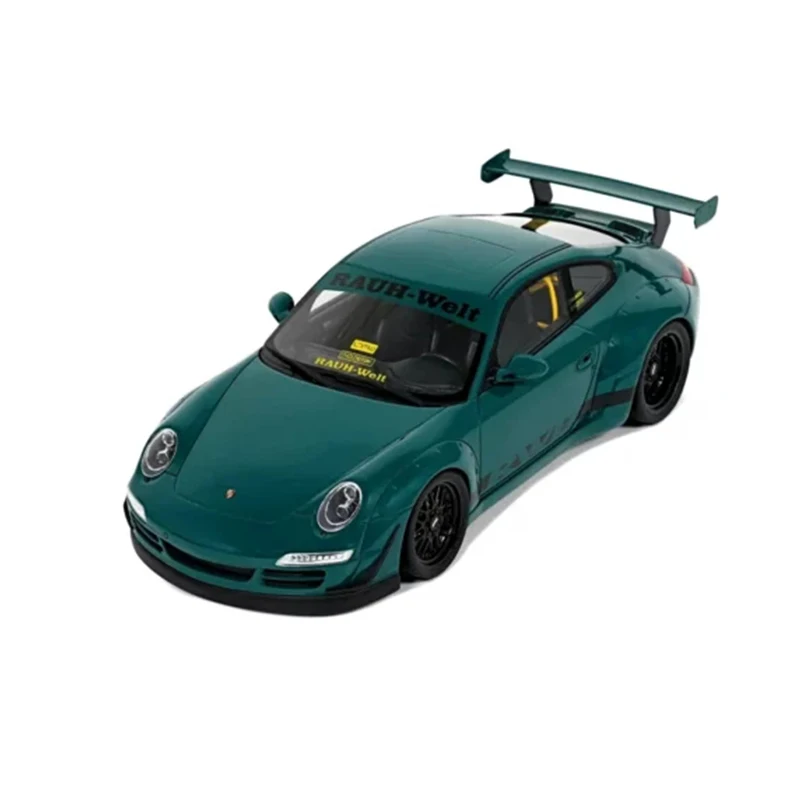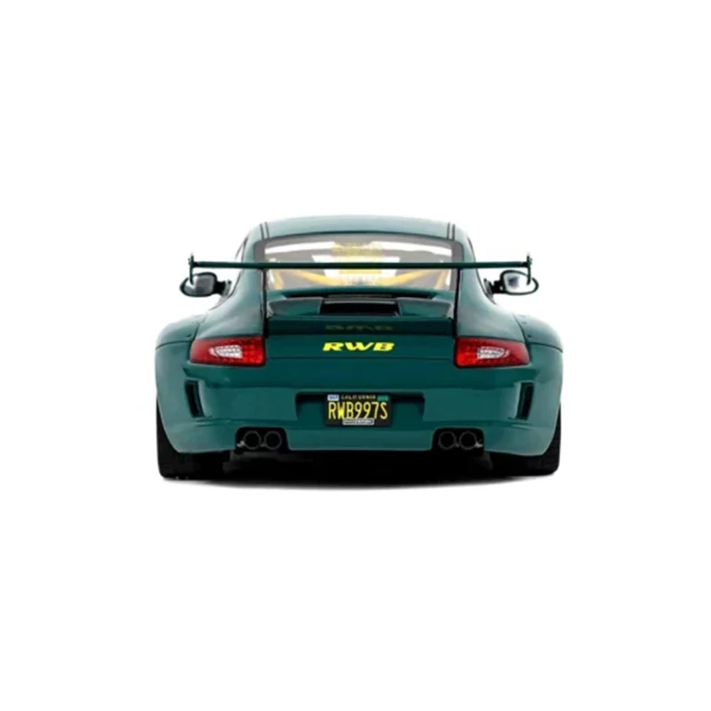 Experience the thrill of owning a highly detailed 1:18 scale die-cast car with this GT Spirit 991 997 RWB Syunkashuto model, perfect for display. Vibrant in GT896 teal, it captures the sleek, aerodynamic silhouette of a high-performance sports car. The resin construction offers durability and meticulous craftsmanship, highlighting smooth flowing lines, rounded headlamps, and a sculpted hood. The model’s black multi-spoke wheels with low-profile tires, side decals, and a prominent black rear wing spoiler emphasize its racing-inspired design. The clear windshield and side windows reveal an interior featuring a yellow roll cage, adding a striking detail to the overall aesthetic. This static display piece is ideal for enthusiasts seeking a realistic, collector-quality model to showcase during special occasions or as a gift.