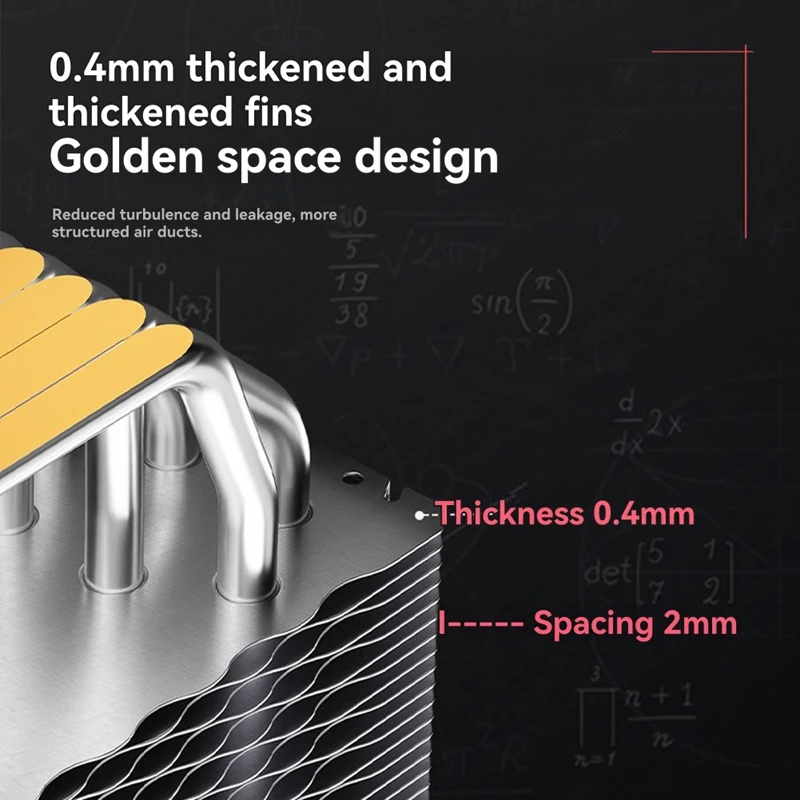 - Constructed with 0.4mm thick fins separated by golden-colored spacers, reducing turbulence and ensuring smooth, regular airflow for better cooling.