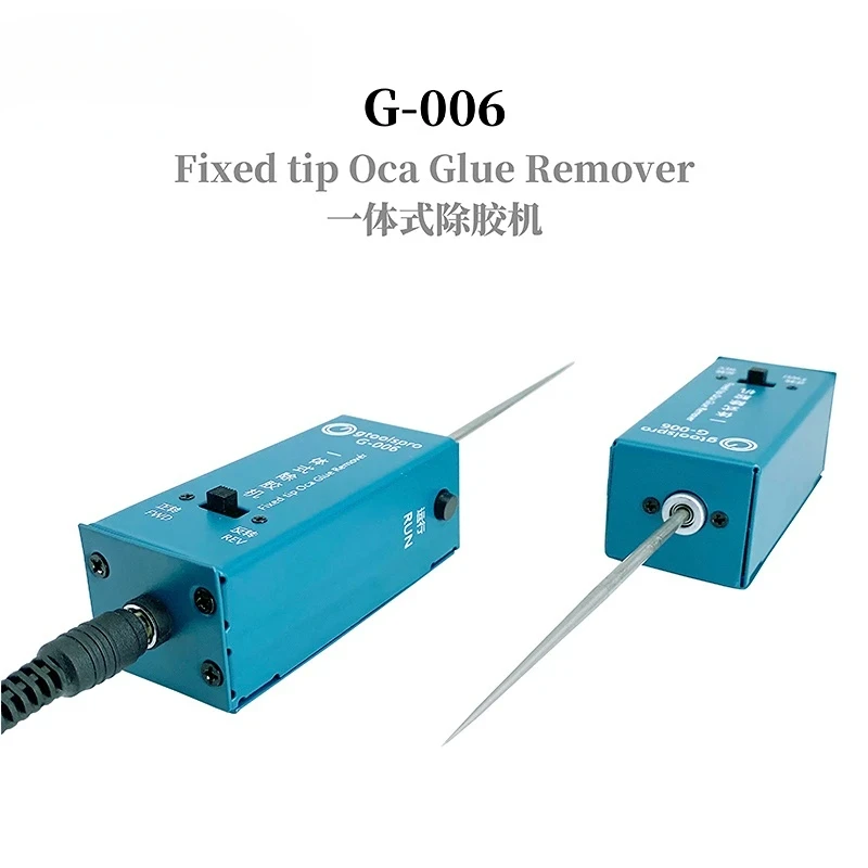Experience the precision and efficiency of this modern Gtoolspro G-006 Fixed Tip OCA Glue Removal Machine, designed specifically for LCD screen cleaning and repair. Its compact, rectangular body features a smooth, teal-colored casing that combines functional aesthetics with a professional look. The device’s slim, fixed metal tip extends vertically for detailed, targeted glue removal, ensuring minimal damage during delicate repairs. Two small black switches labeled “FWD” and “REV” along with indicator lights allow for precise operation control. Whether working on an iPhone or Android LCD screen, this tool offers reliability and user convenience. Its integrated design guarantees stability, accuracy, and effortless handling during screen repair procedures, making your repair process more precise and streamlined.