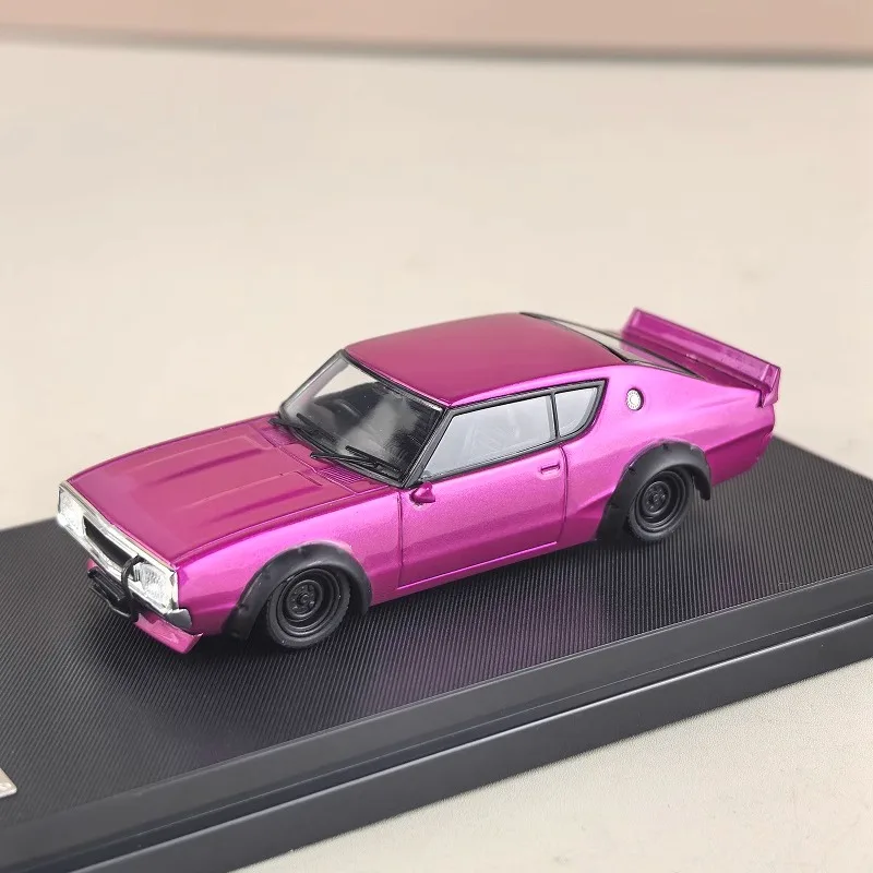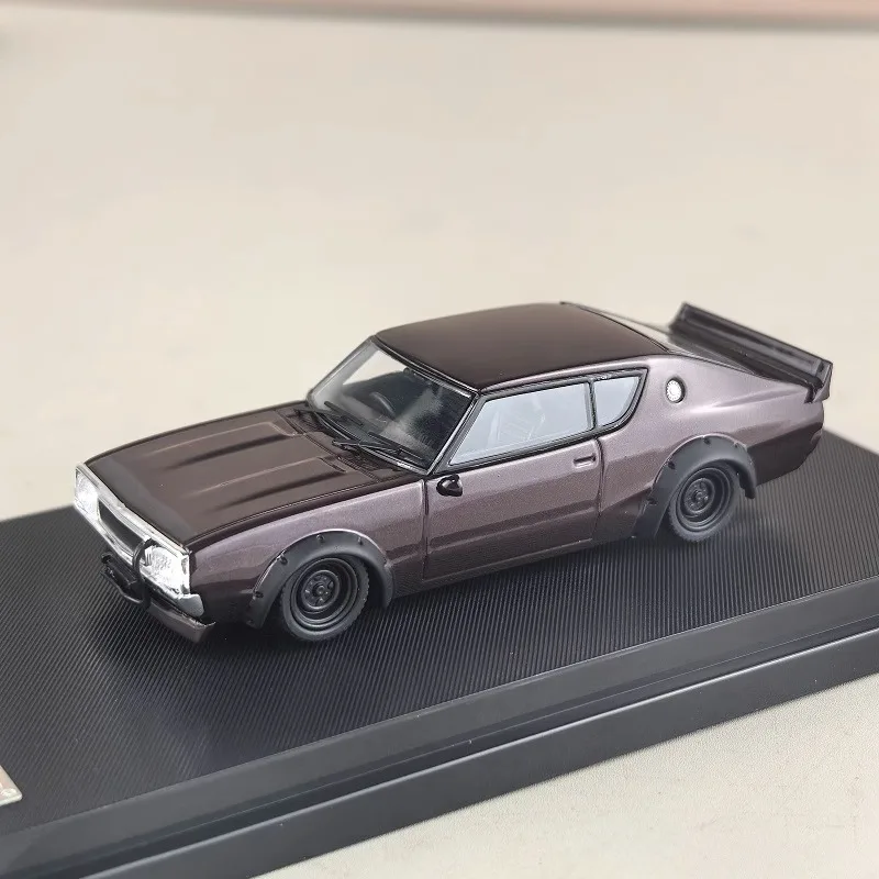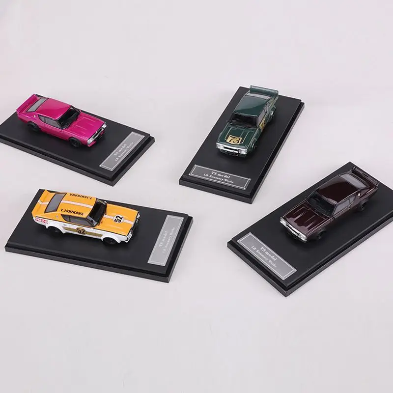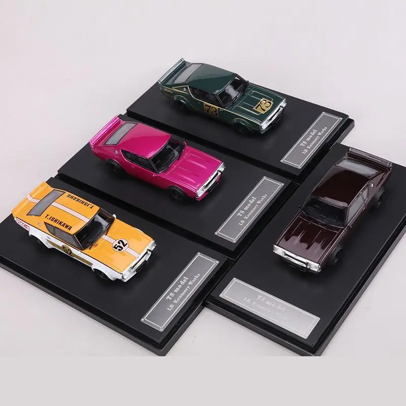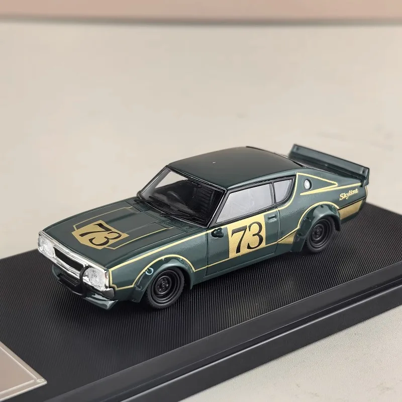Experience the thrill of owning the exquisite 1:64 scale diecast model of the iconic GTR Skyline KPGC110. Featuring a striking deep green finish with elegant gold accents, this model captures the timeless essence of this classic racer. The detailed design includes a sporty coupe silhouette, complete with a raised rear spoiler, realistic headlights, and an eye-catching “73” number. Crafted from a durable alloy and plastic, this miniature car not only looks fantastic but also feels substantial in your hands. Perfect for display, it comes on a premium textured black base adorned with a silver nameplate, making it an ideal addition to any collection.