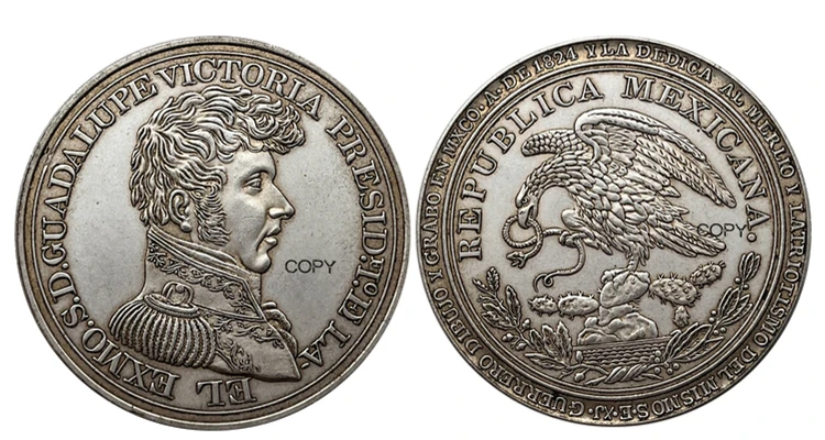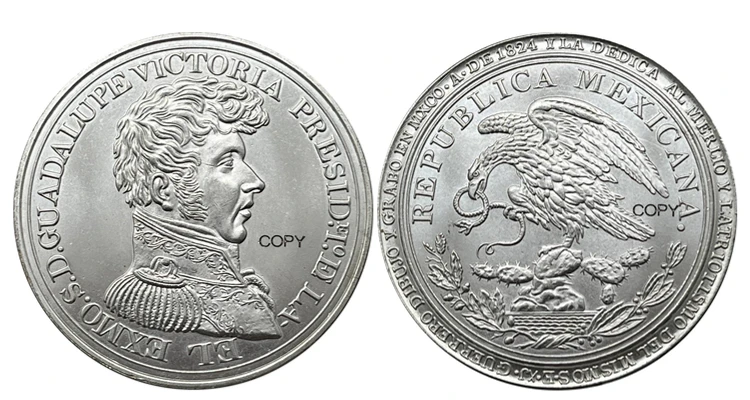 - Designed with meticulous engraved details, including Guadalupe Victoria’s profile, curly hair, facial features, and military attire, showcasing expert craftsmanship and depth.