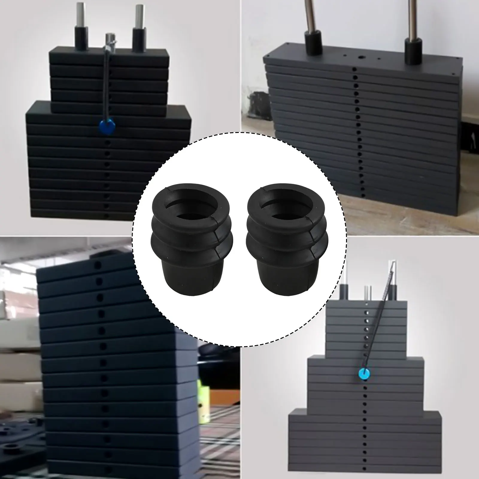 Enhance your strength training setup with this set of two black PVC weight stack guide bar sleeves, each measuring approximately 49mm in height, with an outer diameter of 38mm and an inner diameter of 25mm to fit 30mm guide bars. Designed to reduce collisions and ensure smooth movement of weight stacks, these durable and practical sleeves are easy to install, providing a secure fit for various gym equipment. Weighing about 30 grams each, they combine functionality with a sleek, minimalist appearance, seamlessly integrating into your workout environment for a more efficient and enjoyable training experience.