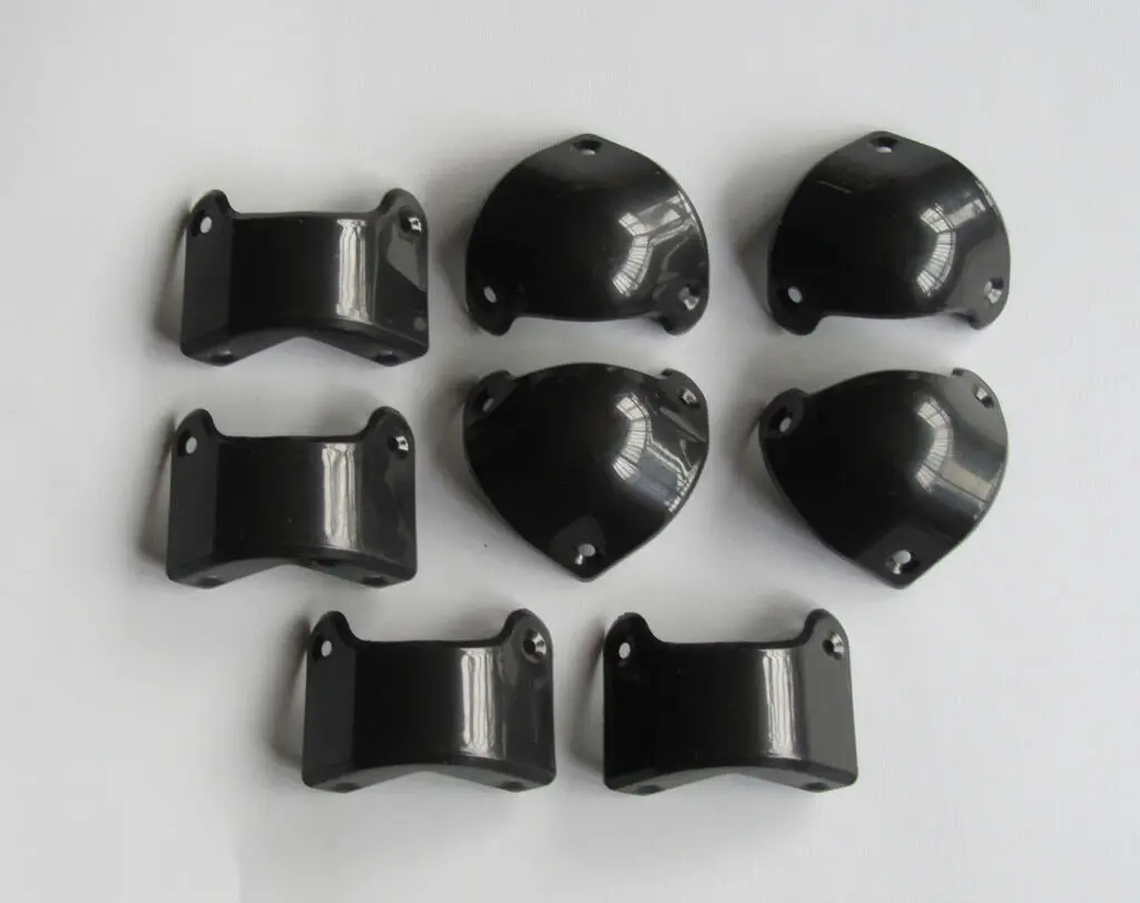 Enhance your guitar amplifier with this set of eight black plastic cabinet corners, featuring four front and four rear pieces tailored for superior compatibility. Crafted from durable plastic, these corners are lightweight yet strong, ensuring they can withstand the rigors of your musical pursuits. The sleek black finish offers a professional look, while the rounded design ensures a seamless fit at the edges of your amplifier cabinets. Each corner is precisely designed with drilled holes for easy screw installation, ensuring secure attachment and giving your amplifier the protection it deserves. You’ll appreciate how these corners not only safeguard your gear but also complement its aesthetic.