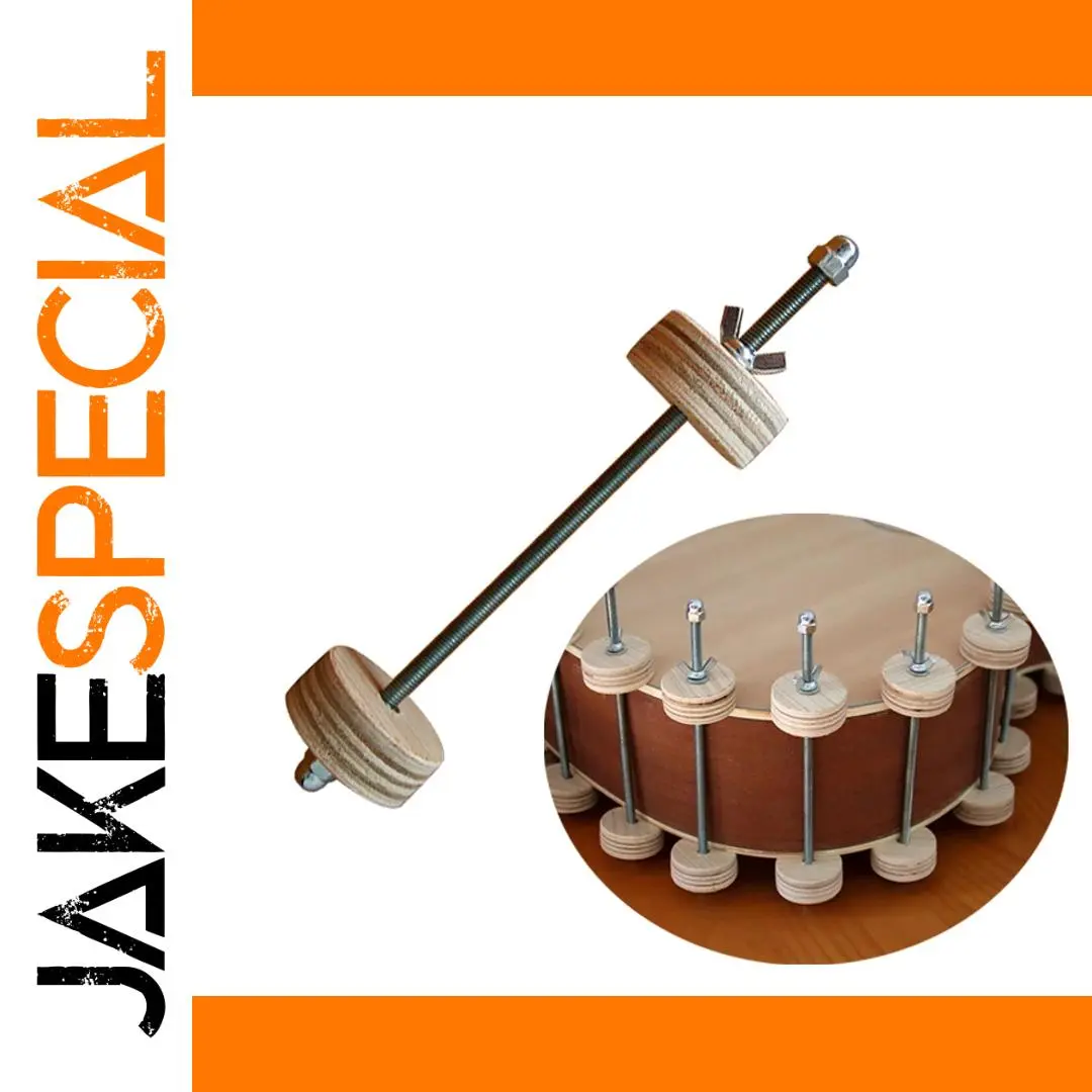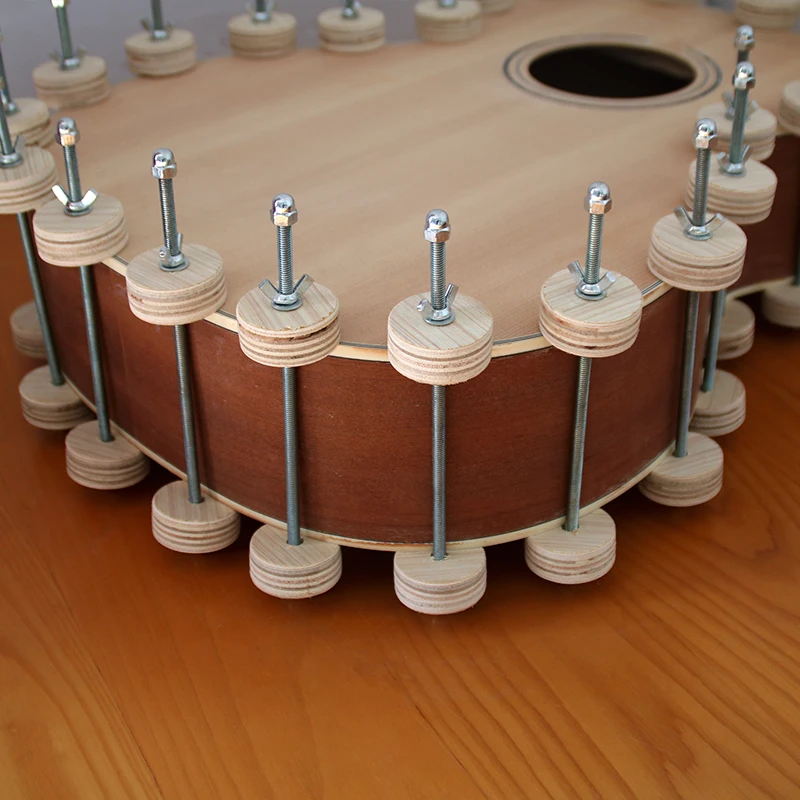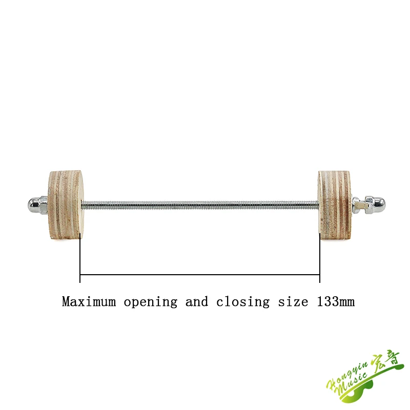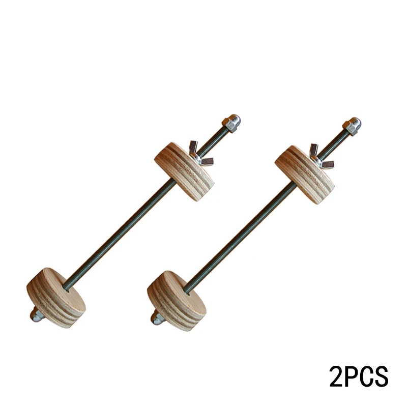 This guitar bass body assembly clip, measuring 190mm x 50mm and weighing 90 grams per piece, features a durable combination of wood and iron. Designed for precise and reliable guitar construction and repair, it includes two light-colored wooden wheels with concentric growth rings and a sleek metal rod with an adjustable tightening mechanism. Perfect for securing guitar bodies during assembly or slot repairs, it is recommended to use 22 clips for full assembly and more than 3 for repair work. Its balanced mix of sturdy materials ensures gentle yet firm clamping, making it an essential tool for dedicated luthiers and professional guitar builders seeking accuracy and craftsmanship.