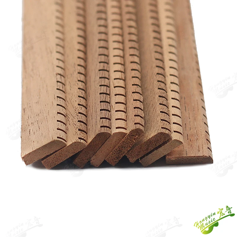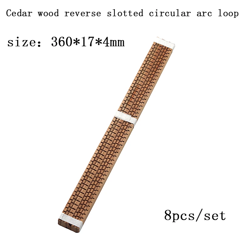 Imagine elevating your guitar craftsmanship with this carefully curated set of eight binding strips, expertly crafted from rich African mahogany and cedar. Each strip is 360mm long, 17mm wide, and 4mm thick, featuring a graceful circular arc shape that enhances the instrument’s aesthetic. The natural wood finish showcases the fine, uniform grain, emphasizing the warm, earthy tones and subtle color variations unique to each piece. Designed for precise fitting along curved edges, these strips serve as both reinforcement and decorative inlays for guitar bodies. Their reverse slotted, beveled edges ensure seamless bonding, giving your guitar a professional, polished look. Whether for repair, customization, or new build, this set offers reliable quality and organic beauty in every detail.