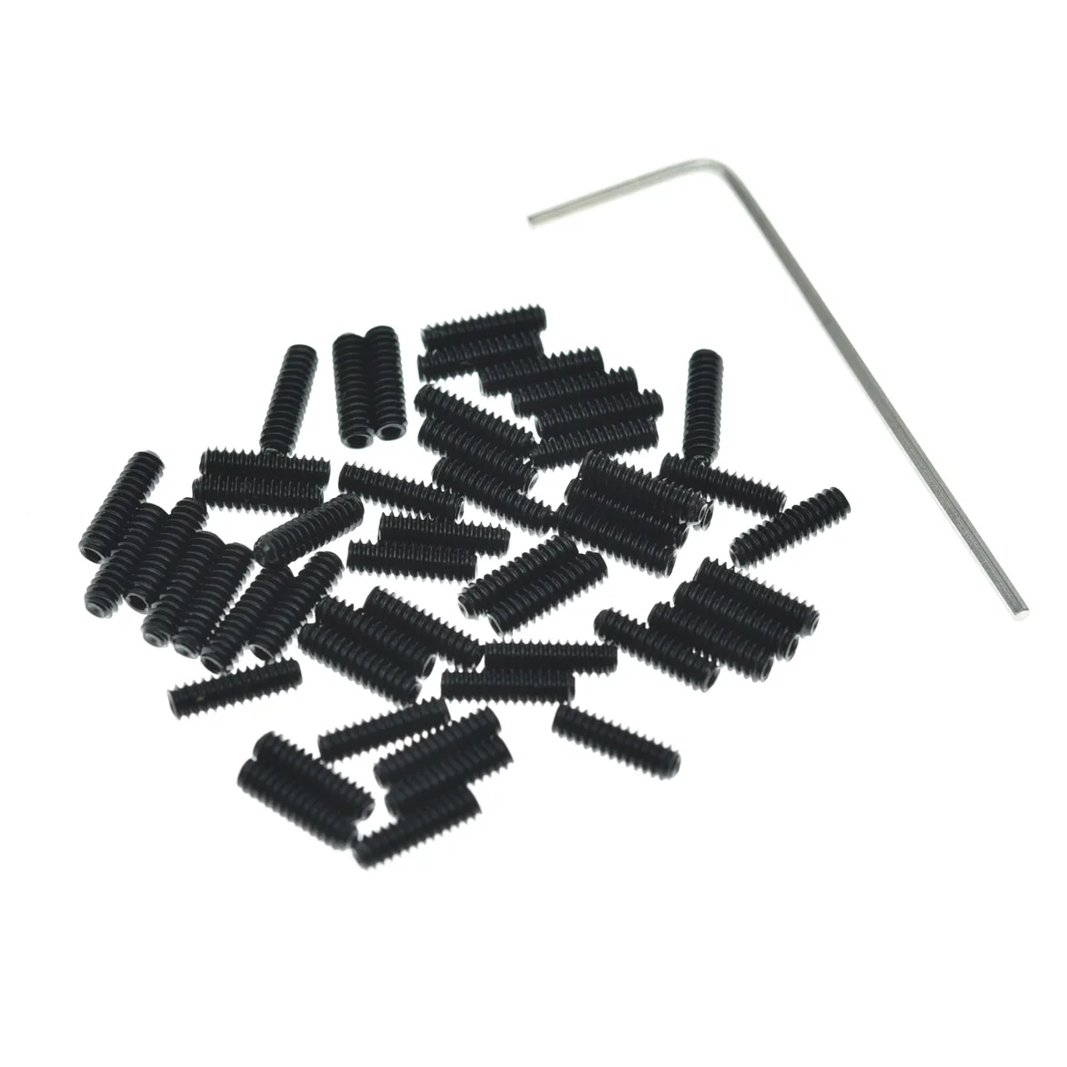 Enhance your guitar’s performance with this set of 50 high-quality hex screws, crafted from durable stainless steel and alloy steel. Designed specifically for precise saddle height adjustments on Fender Strat and Telecaster models, these screws come in three metric sizes—6mm, 8mm, and 10mm—and three US thread sizes—1/4″, 5/16″, and 3/8″—each with accurate threading for versatile compatibility. The black alloy steel and silver stainless steel finishes add a sleek, modern touch, while the included L-shaped Allen wrench ensures easy installation. Perfect for replacing vintage or contemporary guitar saddle screws, these precision components guarantee reliable tone and stability.