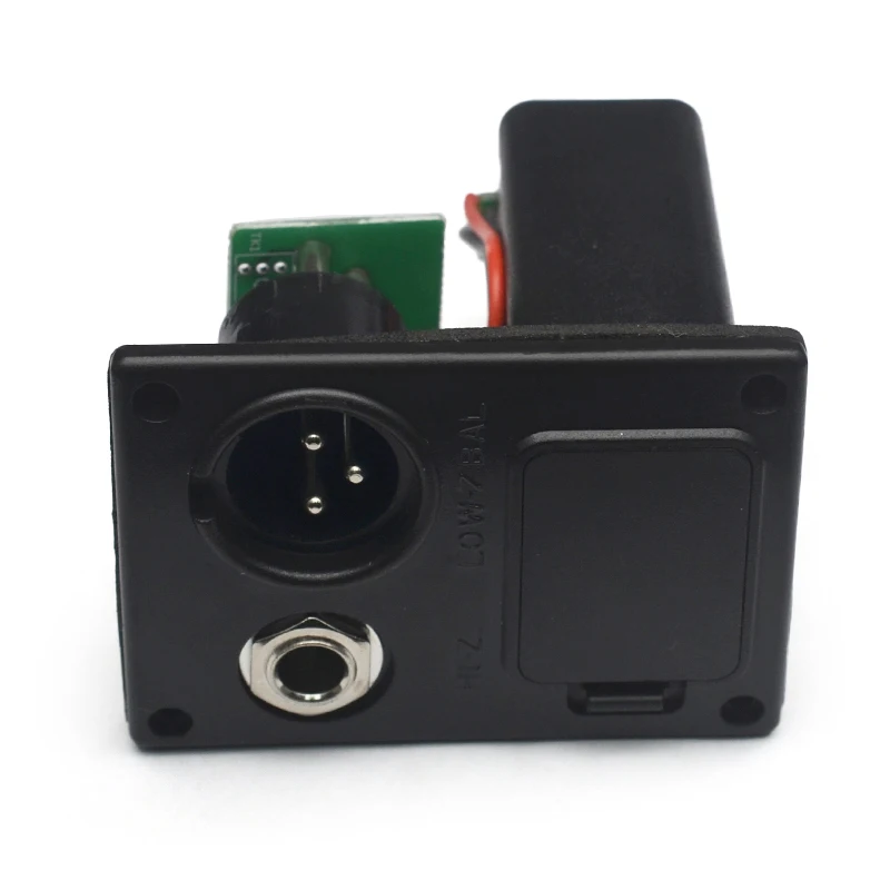 - Equipped with a 4-pin plug and a circular socket with three internal contacts, facilitating a reliable connection to 9V batteries (not included) and your audio equipment.