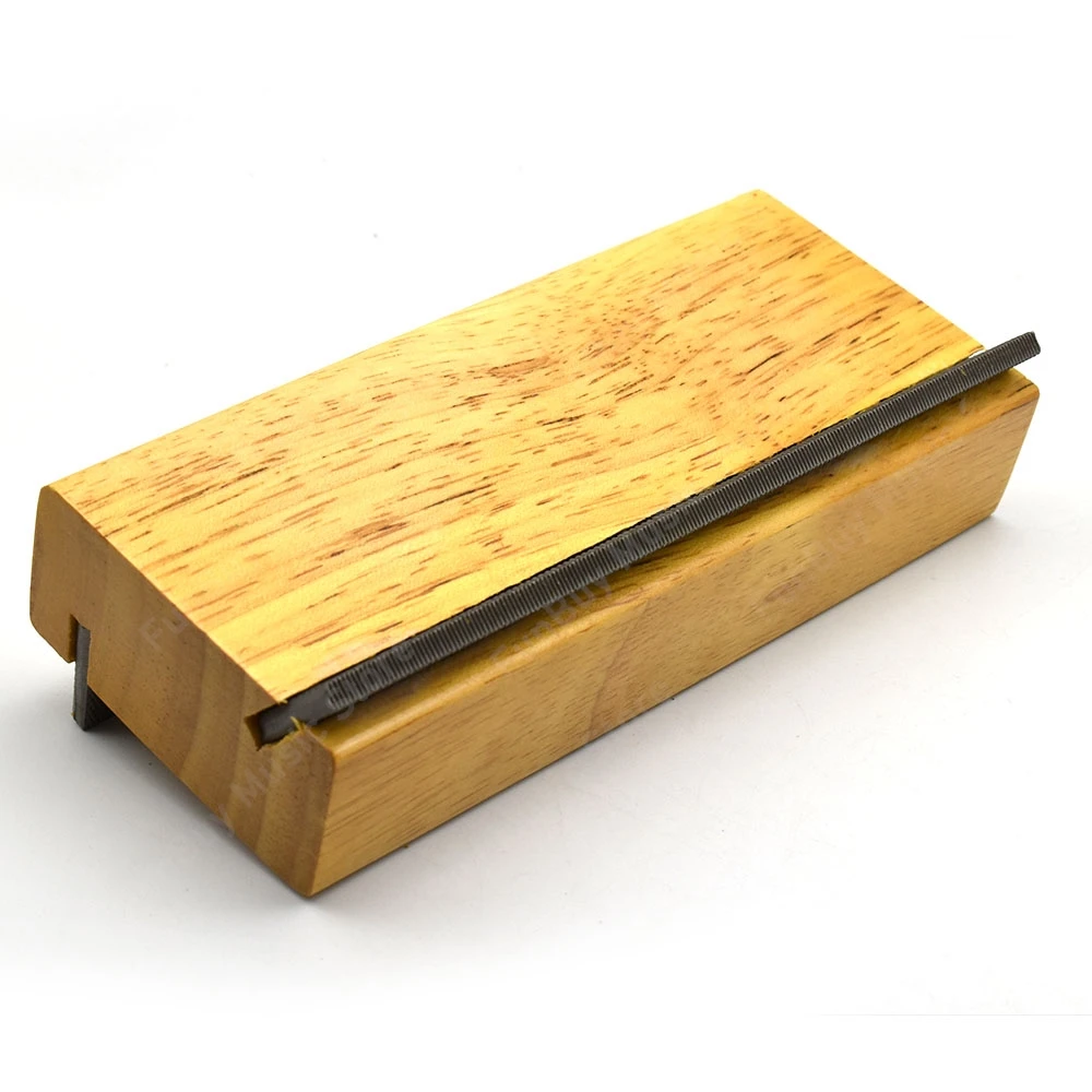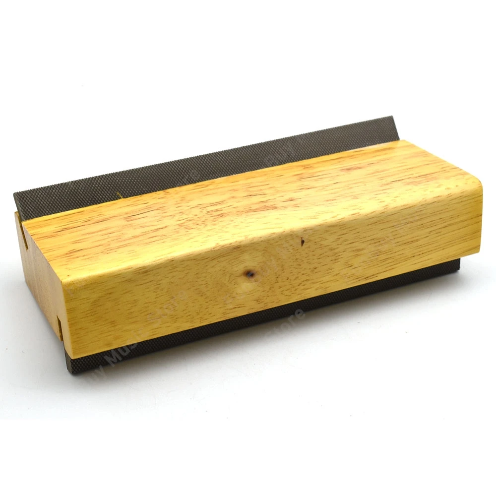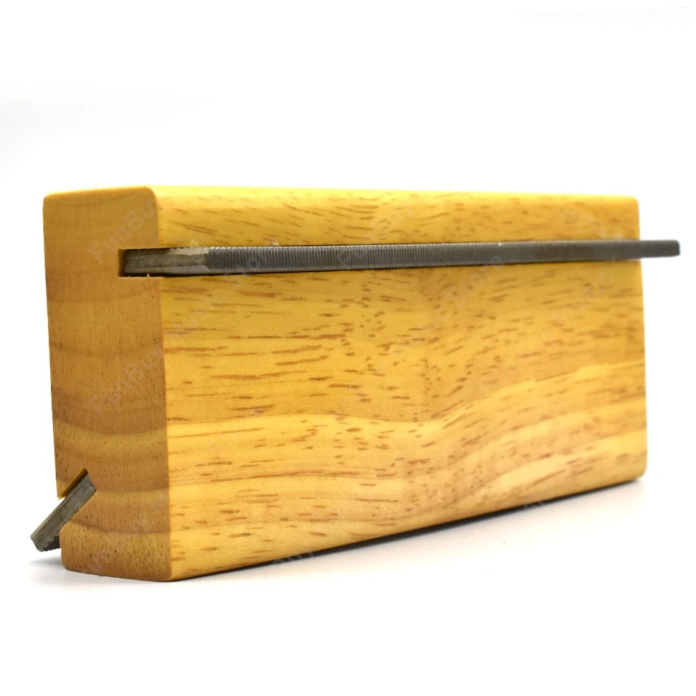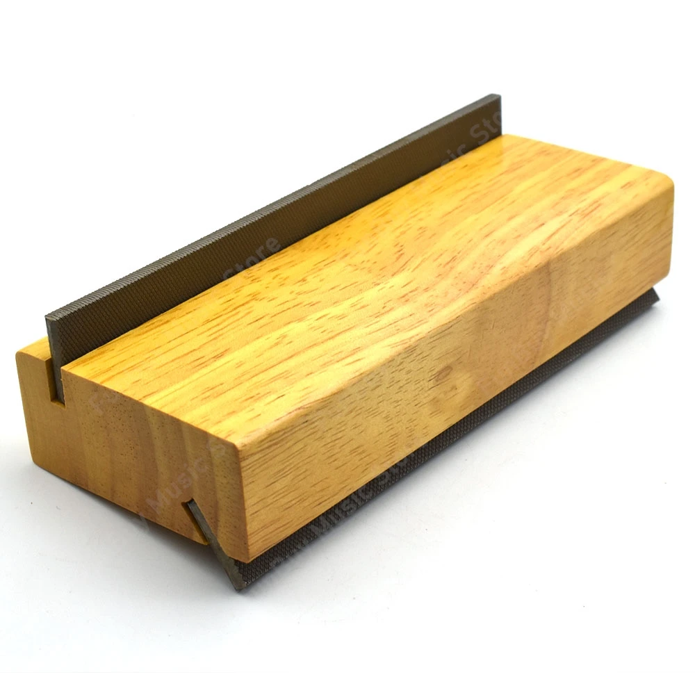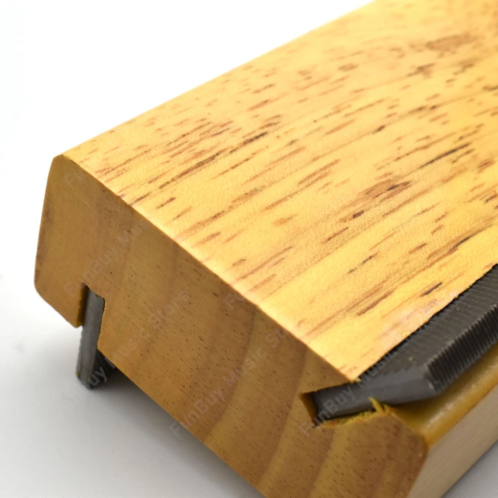 Imagine elevating your guitar maintenance skills with this expertly designed fret crowning file. Crafted from high carbon steel with a hardness of 60, it offers unmatched durability and precision. Its elongated wooden body, featuring natural grain patterns, provides a comfortable grip, while the sleek metallic filing surfaces ensure smooth, accurate work. The tool combines a fine bevel edge at 35 degrees with a robust 90-degree right-angle file, enabling you to effortlessly polish, bevel, and smooth fret ends. Whether you're a professional luthier or a dedicated guitar enthusiast, this versatile tool simplifies complex tasks. Its modular, replaceable files make it easy to maintain optimal condition, helping you achieve flawless fret work every time. Master your guitar repairs with confidence and ease using this reliable crowning file.