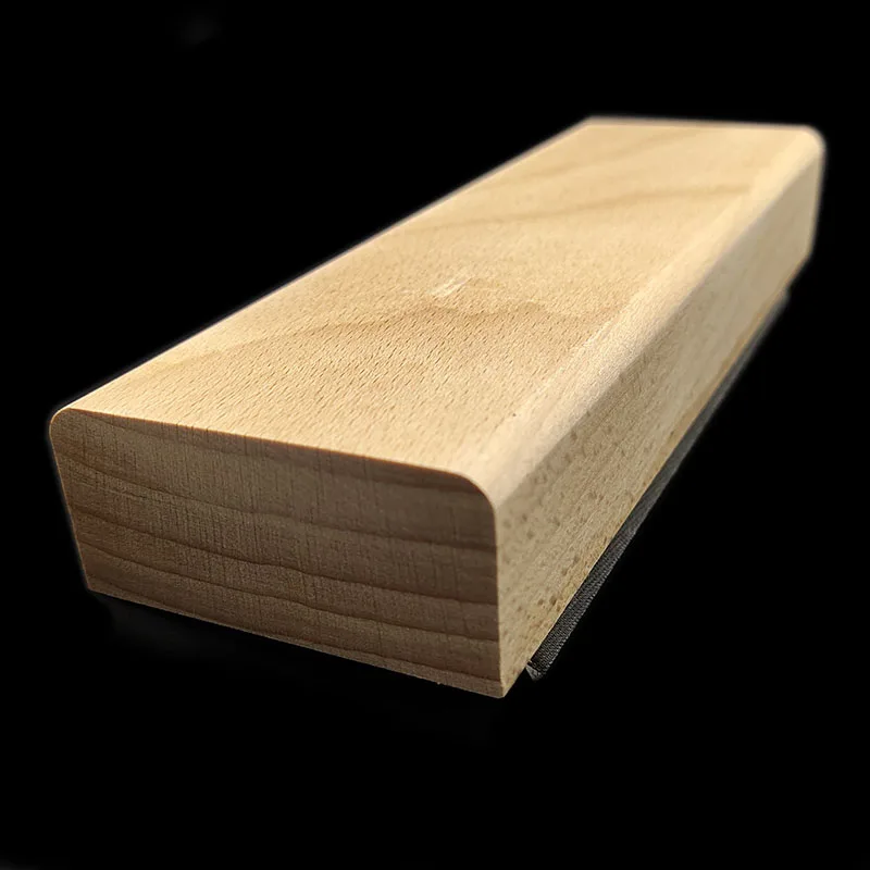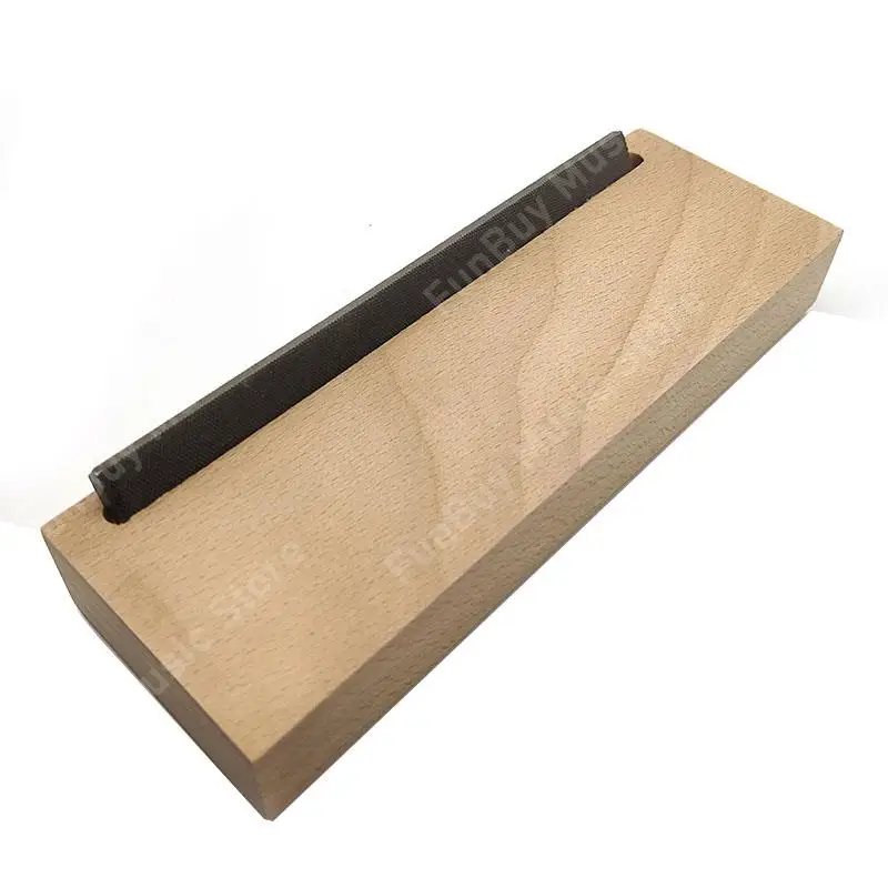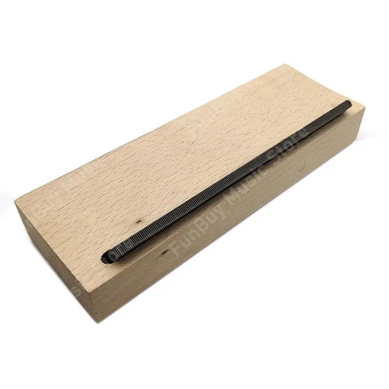 Experience professional-quality fret work with this precisely crafted guitar fret end bevel file. Designed for luthiers and guitar enthusiasts alike, it features a sleek, minimalist aesthetic with a smooth, polished maple wood handle that highlights natural grain patterns. The black textured rubber strip along the side provides an excellent grip for controlled, effortless filing. With its 45-degree bevel angle, this tool ensures perfectly shaped fret ends, enhancing both playability and aesthetics. The larger size allows for efficient beveling of entire fretboards, saving time and effort. Its durable, lightweight construction makes it easy to handle during intricate fret work. This versatile tool elevates your guitar setup and maintenance, offering a professional finish every time.