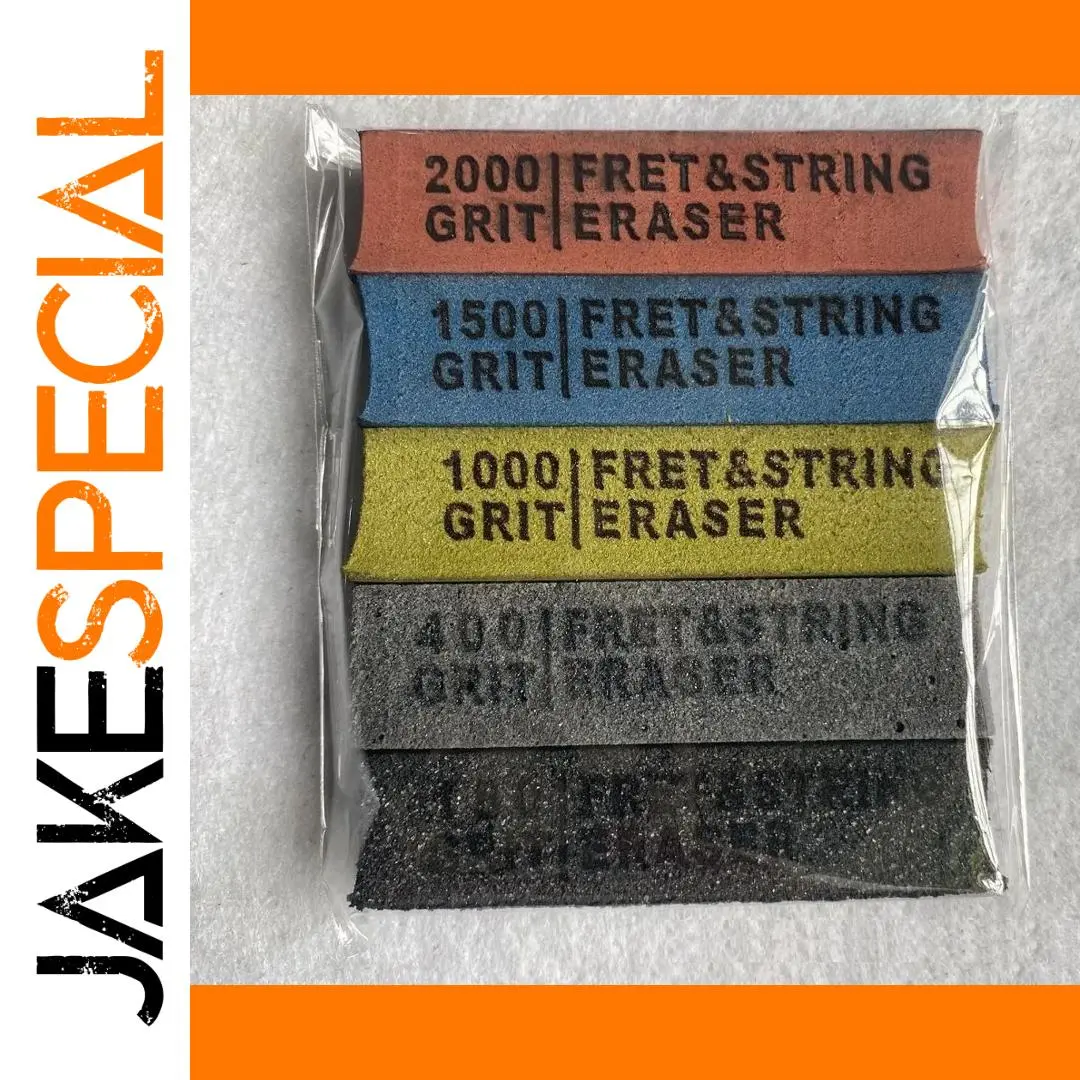 Enhance your guitar maintenance with this set of polishing erasers designed to restore fret surfaces. The flexible rubber material fits snugly around fret wires, effectively removing scratches, oxidation, and grime without harming the fingerboard. Available in multiple grit levels—180, 400, 1000, 1500, and 2000—to suit various polishing needs, these versatile tools can be cut into different shapes to access hard-to-reach areas. Ideal for serious guitarists and enthusiasts, this easy-to-use set helps keep your instrument in pristine condition, ensuring optimal playability and an improved appearance. Experience professional-level fret care at home with these reliable polishing aids.