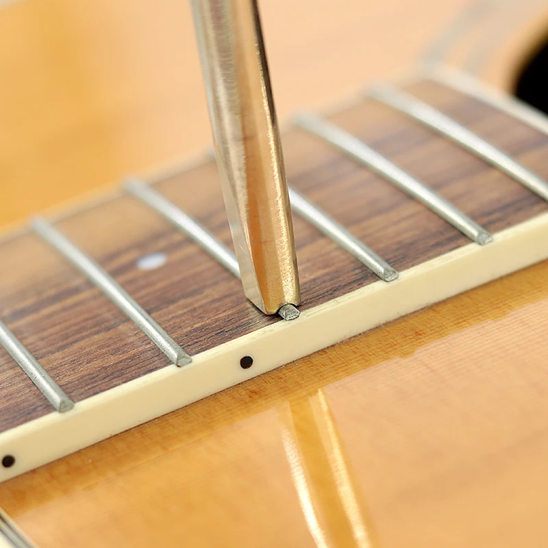 Experience precise fret repair with this elegant wooden electric acoustic guitar fret wire reset punch tool, designed for tightening loose or cocked frets on various stringed instruments, including acoustic, electric, classical guitars, ukuleles, and mandolins. Crafted from high-quality wood, it features a slim, ergonomic body paired with a polished, rounded brass punch needle that offers smooth, accurate pressing without damaging the fretboard. This lightweight, battery-free tool ensures secure fret adjustment, helping you restore optimal playability and sustain. Its minimalist design combines functionality with craftsmanship, making it an essential addition to any guitar repair toolkit for professional luthiers or passionate enthusiasts.