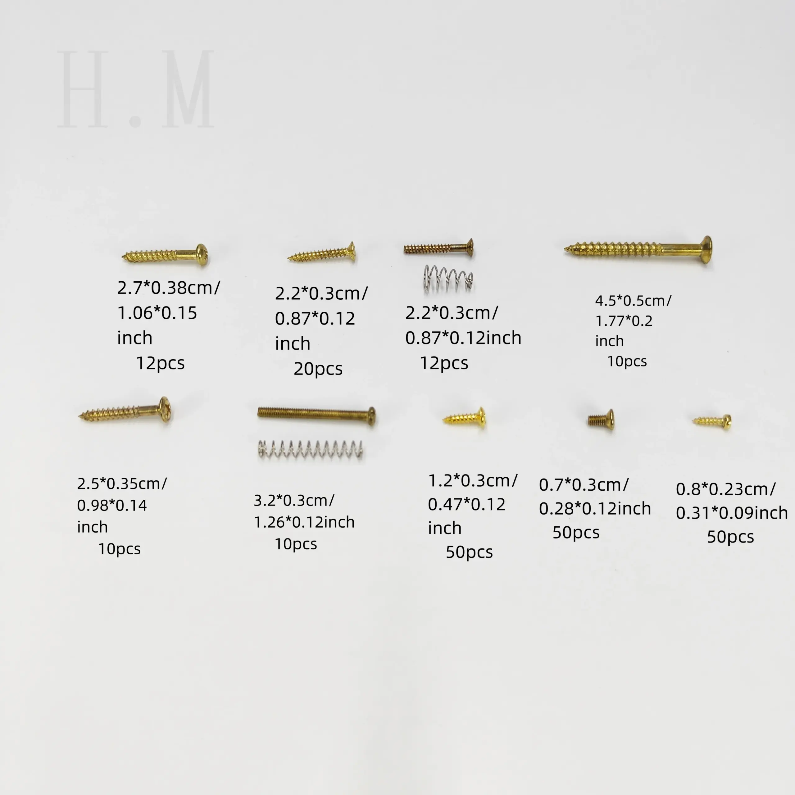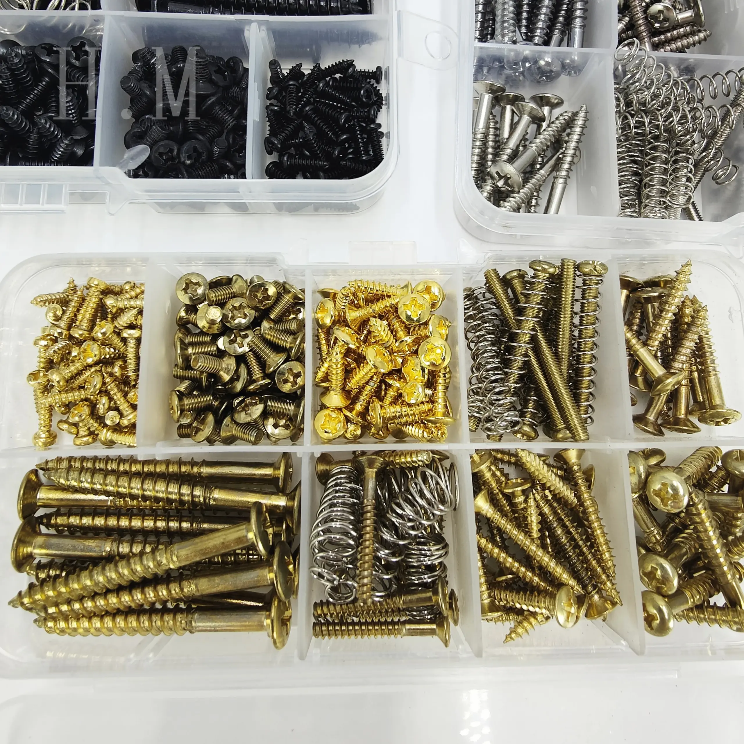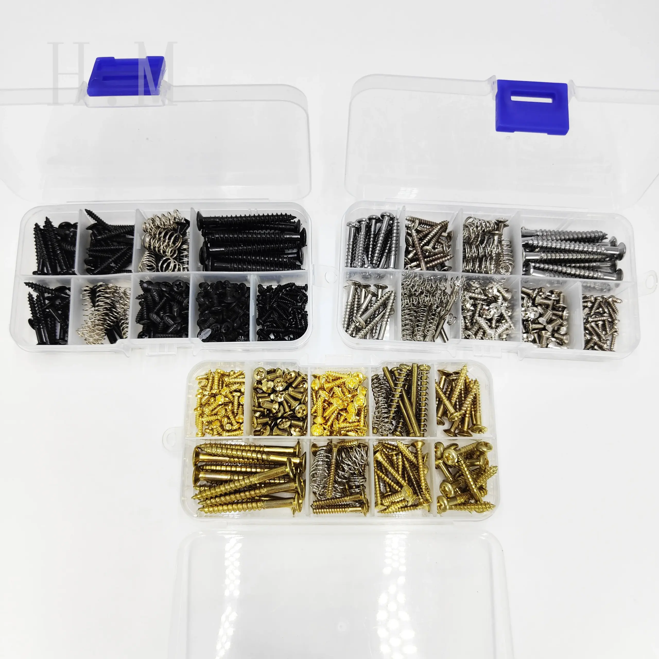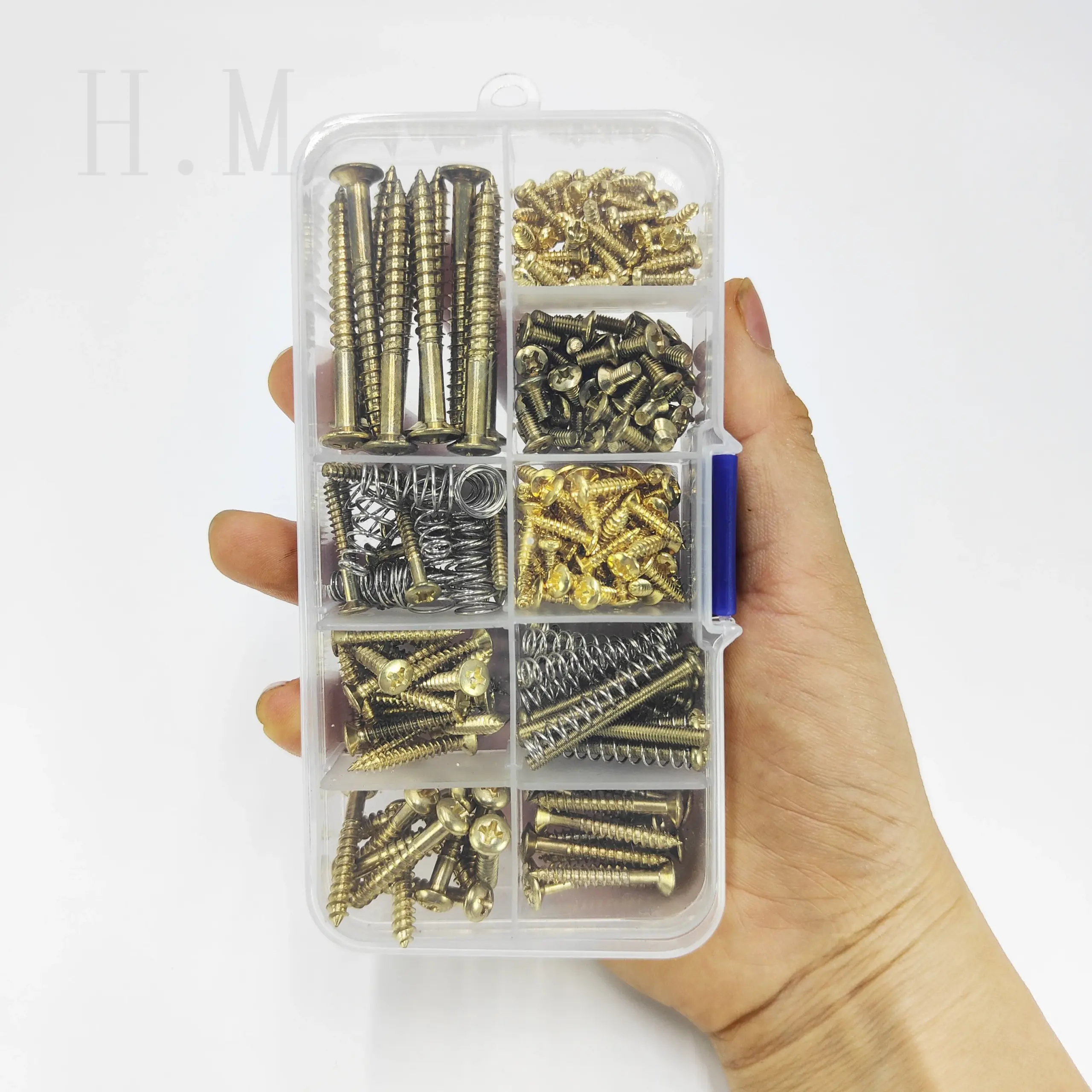 Experience the convenience and organization of this versatile guitar hardware screw set, carefully designed for professionals and DIY enthusiasts. This collection features 246 high-quality metal screws and springs arranged neatly in a transparent plastic box, allowing effortless identification and access. The set's sleek color options—gold, silver, and black—ensure compatibility with various guitar styles and personal preferences. Whether you're repairing, customizing, or building, this comprehensive set provides all necessary sizes. The sturdy plastic container is compact yet spacious enough to keep components protected and organized, making it an invaluable addition to your toolkit. Invest in reliability and precision with this all-in-one guitar screw set designed to meet your repair and assembly needs efficiently.
