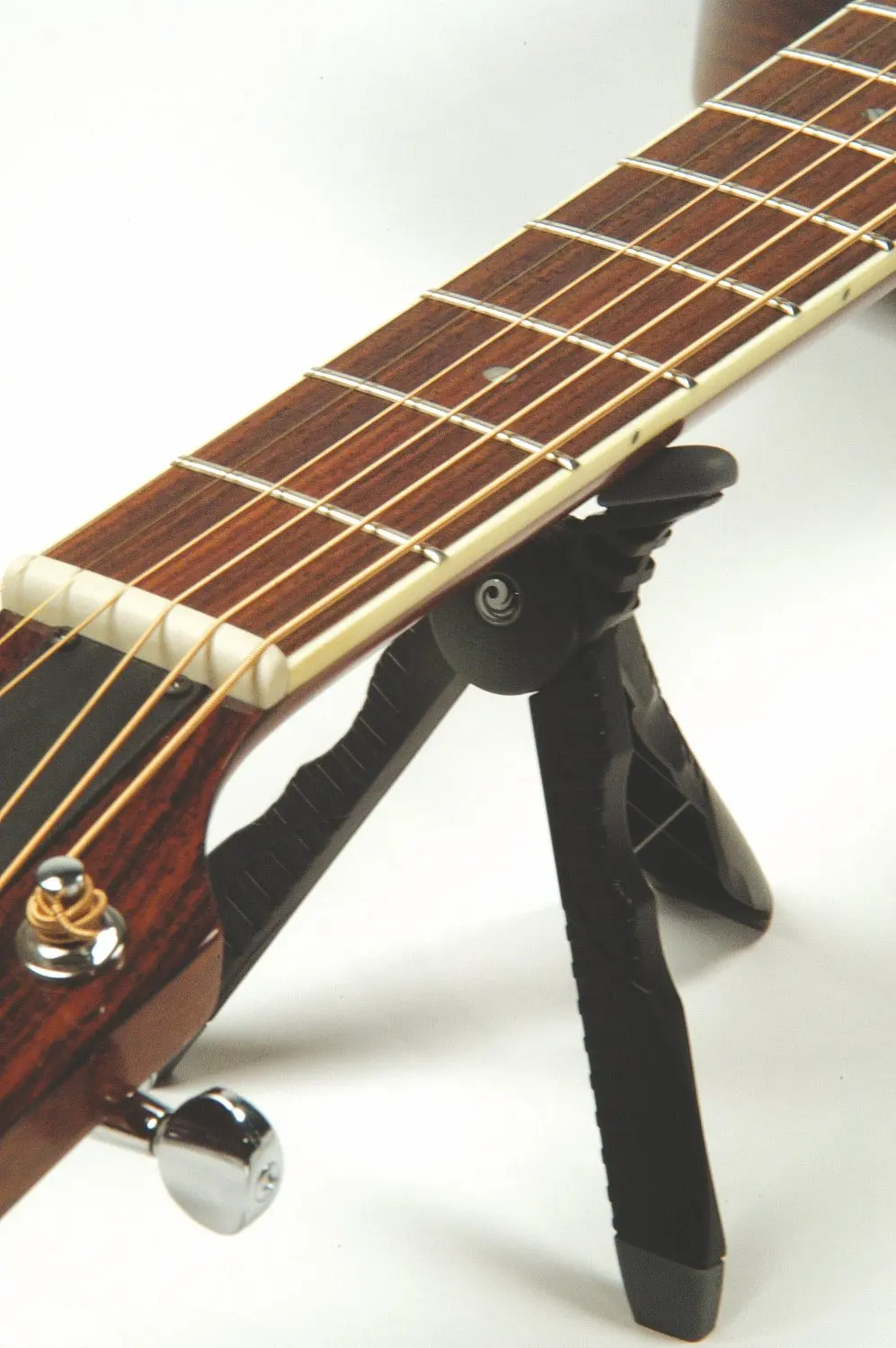 - This this guitar headstand features a sturdy plastic body with textured grooves to grip various guitar headstocks securely during string changes or maintenance.