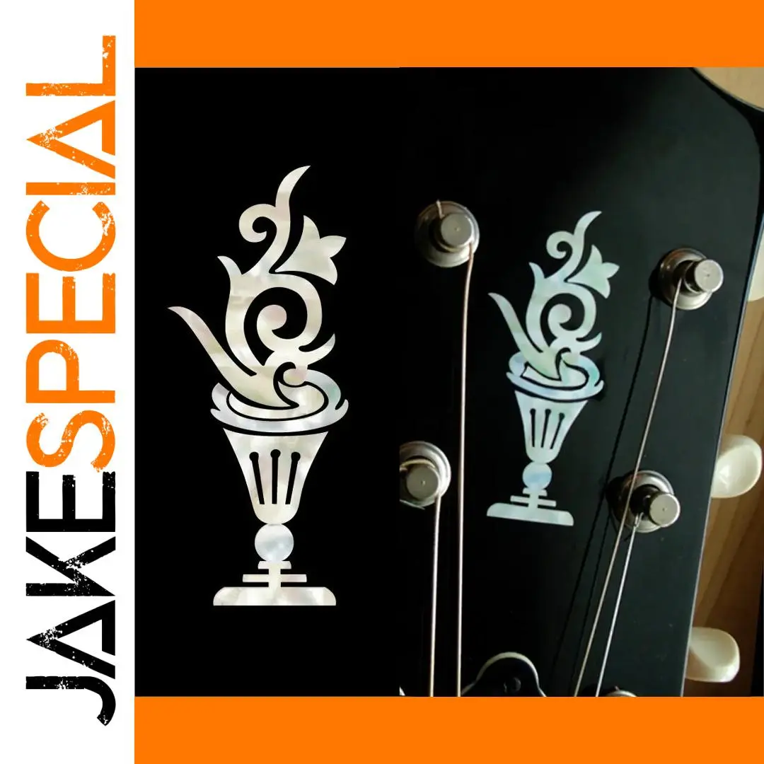 Transform your guitar's appearance with this beautifully crafted inlay sticker that features a flower pot torch theme. Designed from premium PET material, it replicates real inlay work with a reflective finish, adding sophistication to your instrument. This super-thin decal is effortless to apply and remove, ensuring no damage or impact on sound quality. Its symmetrical, flowing design includes scroll-like swirls, petal-shaped extensions, and rounded chalice bases, perfectly complementing your guitar's glossy black surface. Whether you want to give your musical instrument a stylish upgrade or personalize it for your performances, this sticker offers a quick, elegant solution to enhance your instrument’s aesthetic. Enjoy a classy, refined look with easy installation and removal.