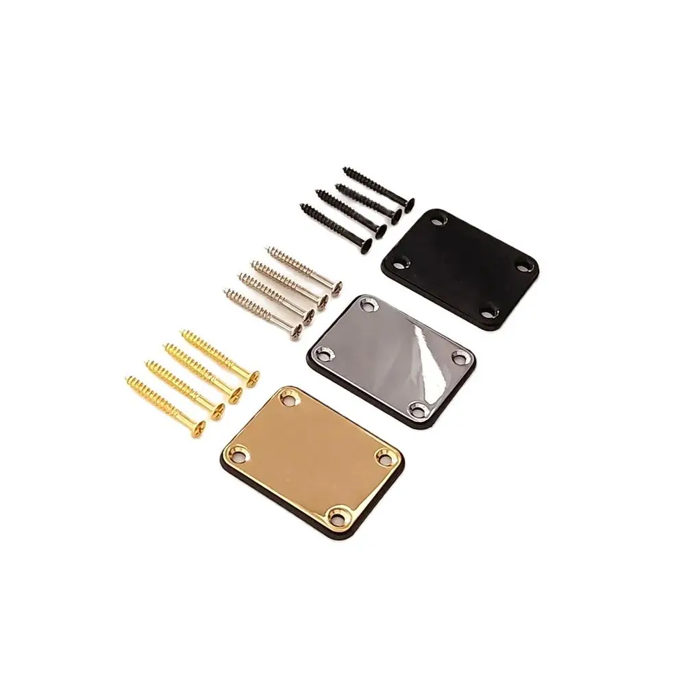 Enhance your guitar's performance and experience the difference with this Electric Guitar Neck Plate Set. Specifically designed for Tele guitar neck joints, it is crafted from high-quality stainless steel, ensuring both durability and a perfect fit. Imagine every chord vibrating powerfully as you play, thanks to the strong and secure connection this neck plate provides. Available in three stunning colors—gold, silver, and black—it adds a stunning aesthetic to your instrument while maintaining its functionality. Elevate your passion for music with this essential upgrade that complements the unique style of your guitar.