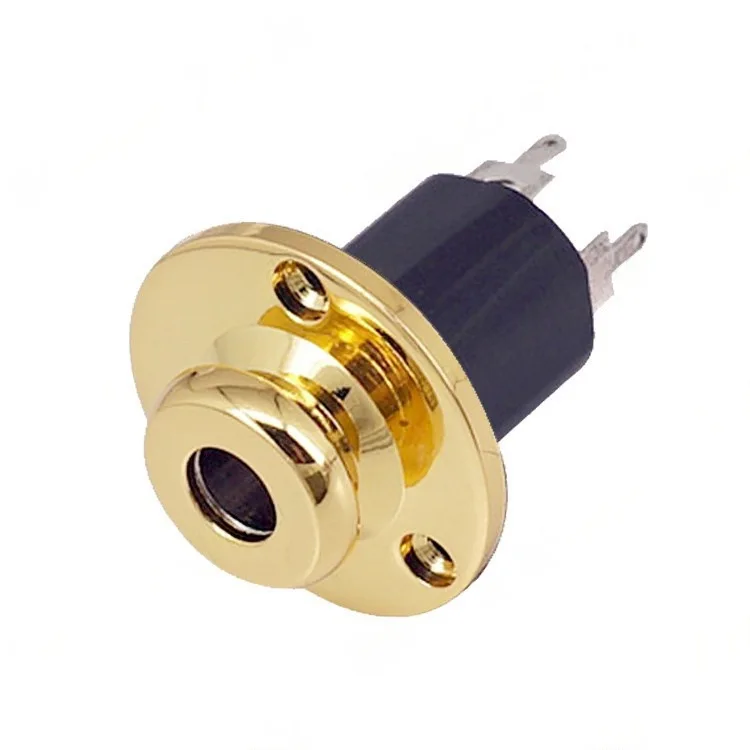 - The socket features a brass cover with a polished, high-gloss finish in silver, gold, or black, adding elegance and complementing various guitar styles effortlessly.