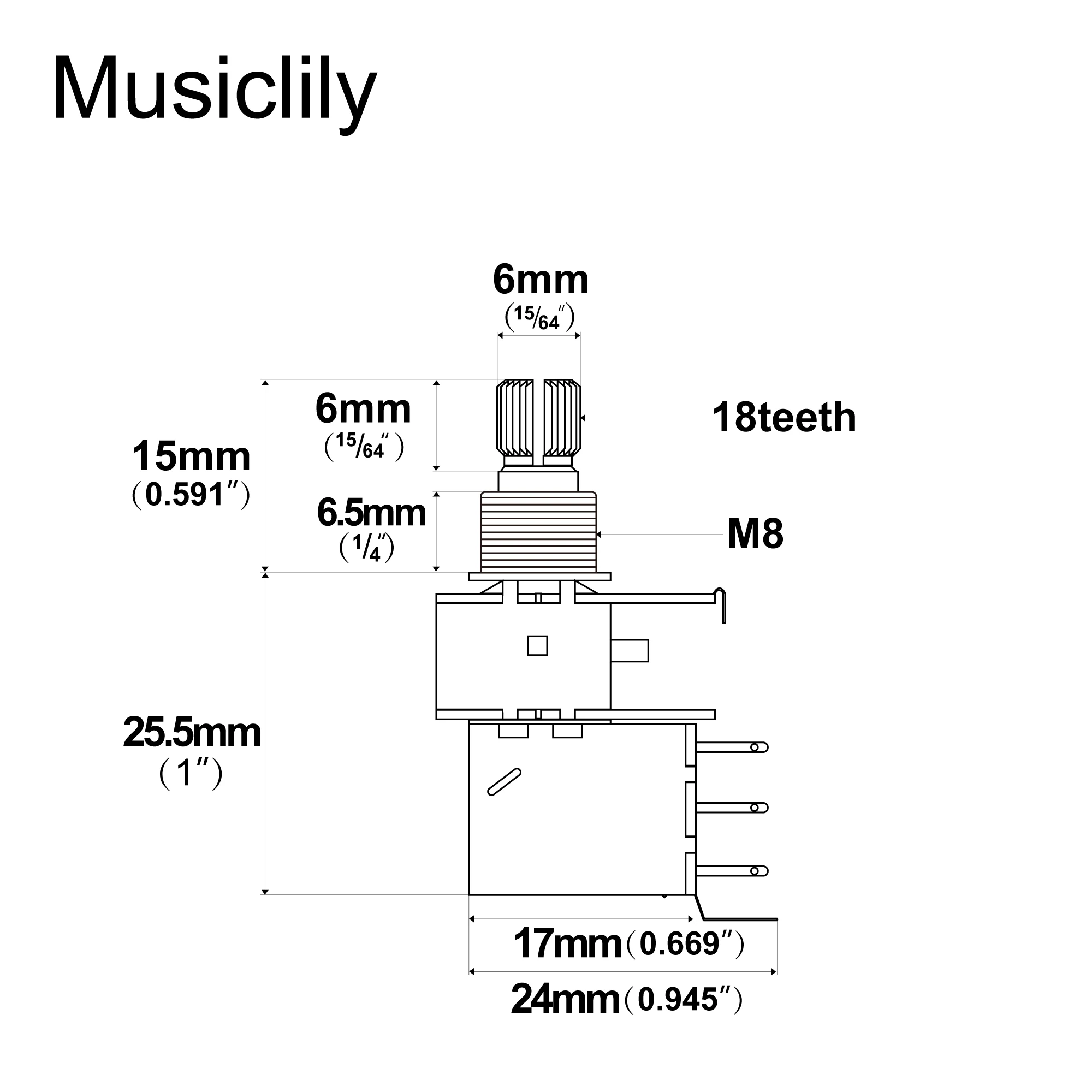 - Each potentiometer has a precise 18-spline split shaft measuring 6mm (15/64 inch), compatible with most standard control knobs, ensuring a secure fit and easy tone or volume adjustments.