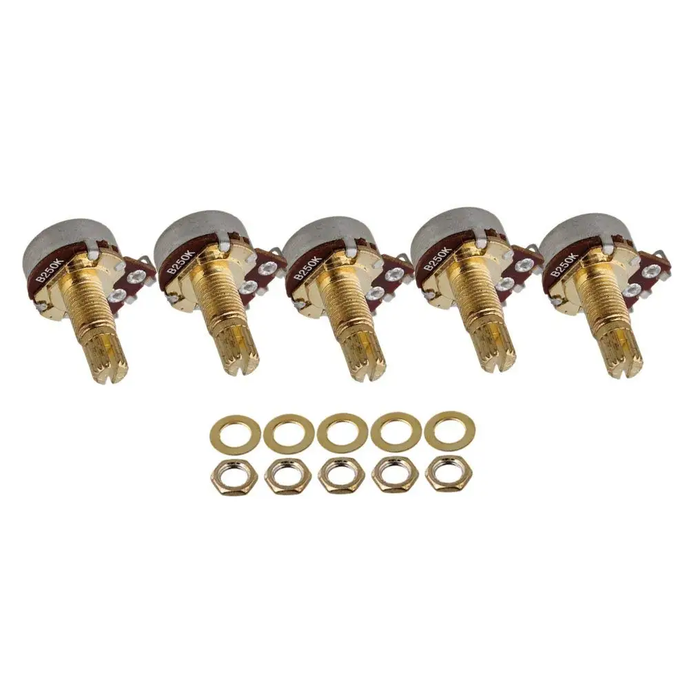 Enhance your guitar's performance with this Gold Mini Potentiometer Set of 5. Each potentiometer is designed to provide exceptional volume and tone control, allowing you to fully express your musical creativity. Imagine the smooth transitions as you play, with every note resonating perfectly. This set offers a perfect solution whether you’re replacing old components or upgrading to something extraordinary. Picture yourself effortlessly adjusting your sound to match your style, making every practice and performance a great experience. Elevate your guitar and unleash your potential with these top-quality pots.