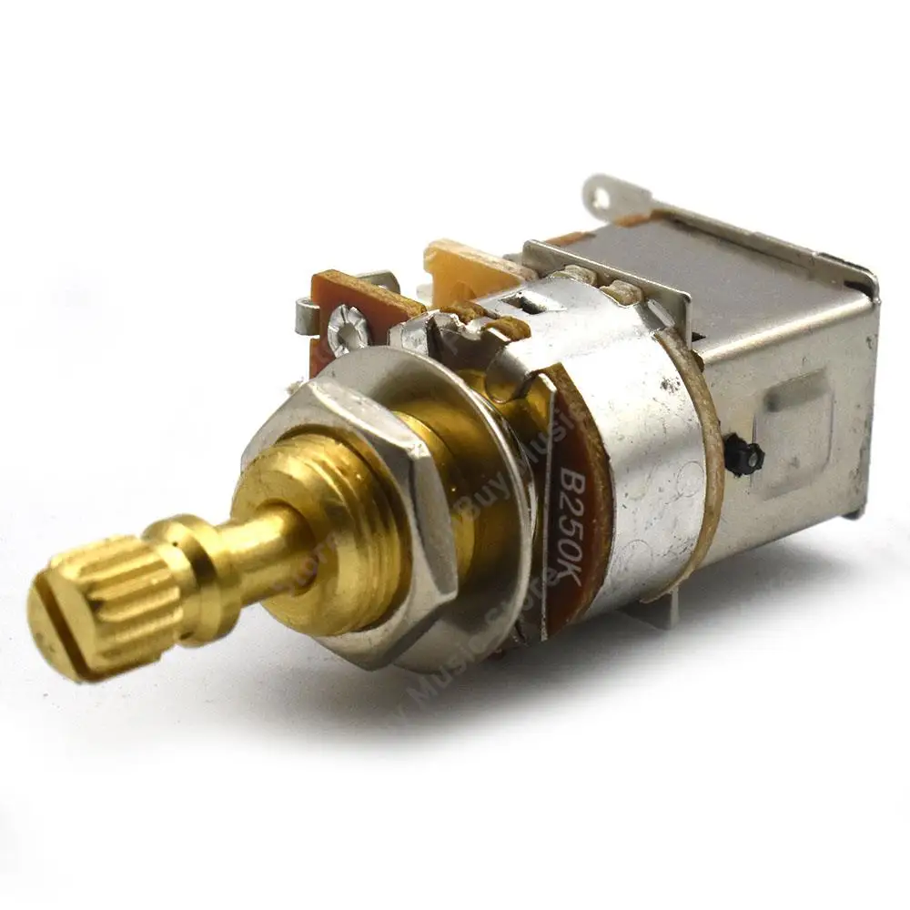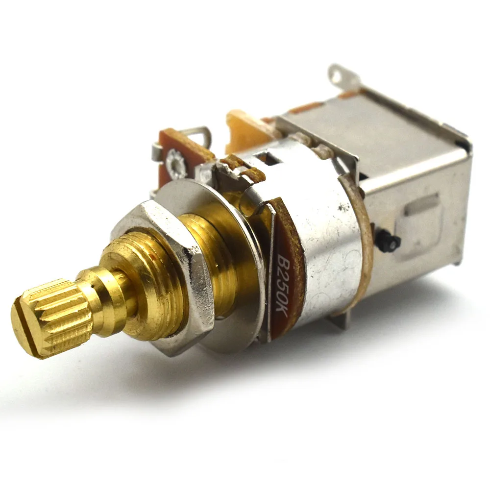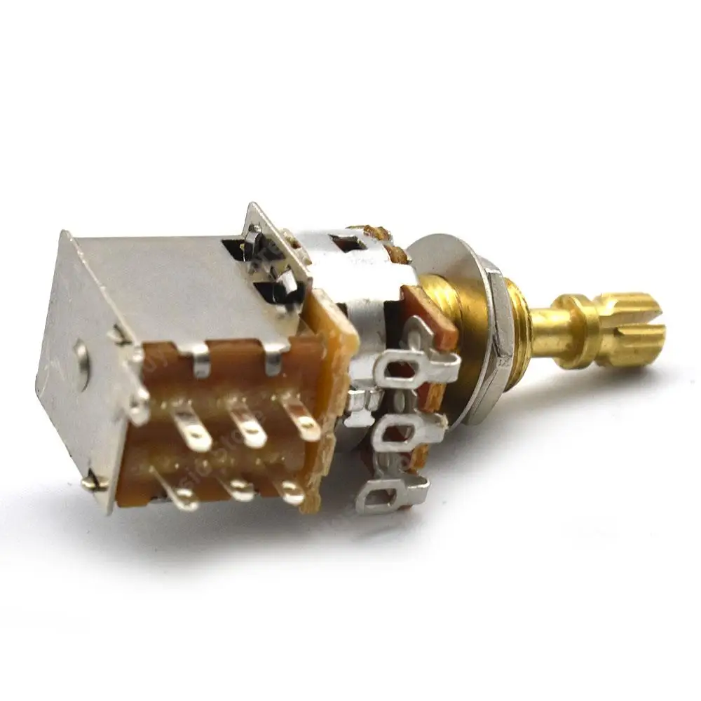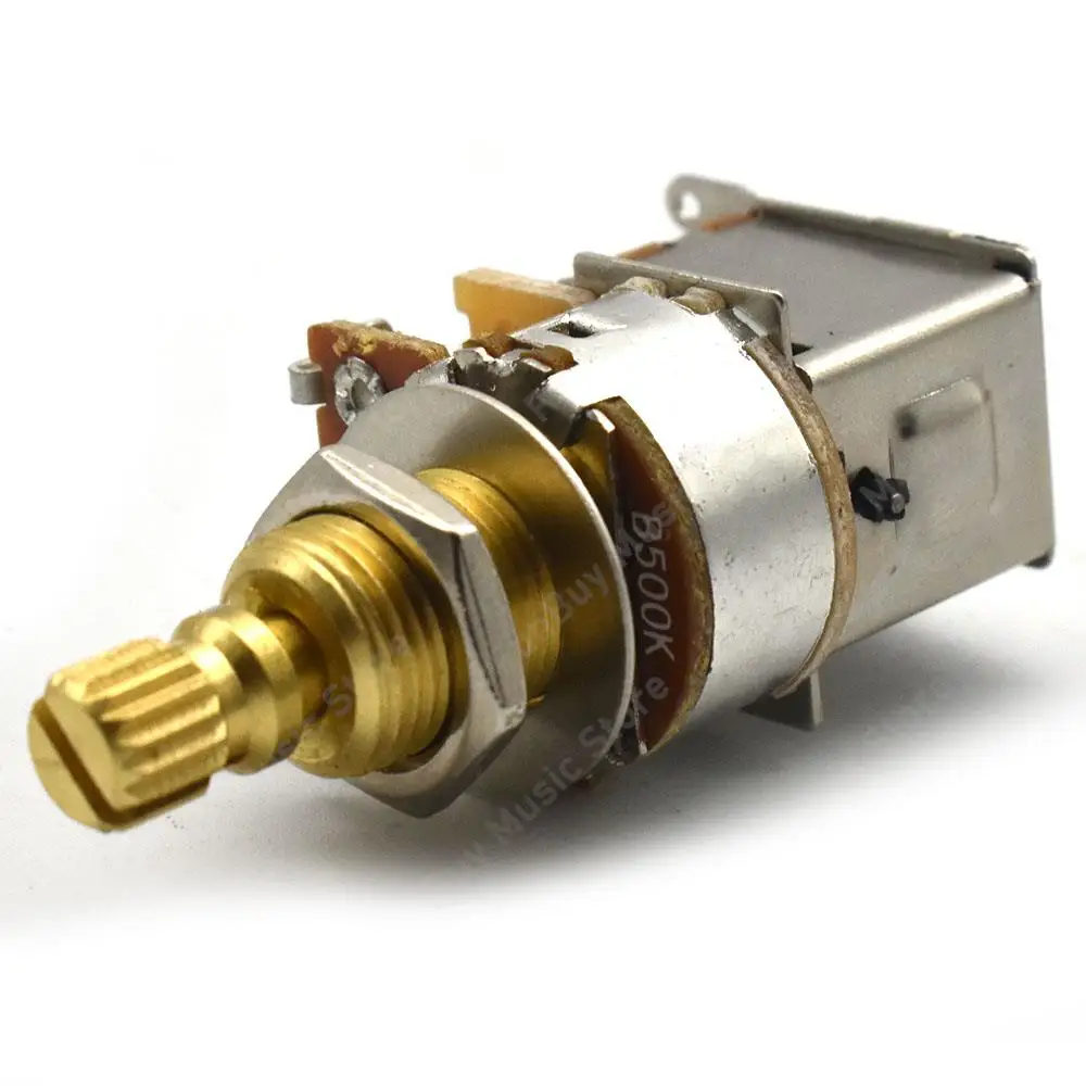 Imagine enhancing your guitar with these expertly crafted push/push potentiometers. Designed with precision, each component boasts a sleek chrome finish that reflects your attention to detail. The split shaft, featuring a coarse knurling, ensures a firm grip and easy knob attachment, making setup smooth and effortless. Whether you're upgrading your guitar's tone or volume control, these high-quality metal pots offer durability and reliable performance. The customizable resistance options, 250K or 500K ohms, provide flexibility to match your musical style. With dimensions crafted for compatibility, these pots blend seamlessly into your instrument, elevating both aesthetics and functionality. Envision the satisfaction of a flawless, professional upgrade, ready to deliver exceptional sound for your performances and recordings.