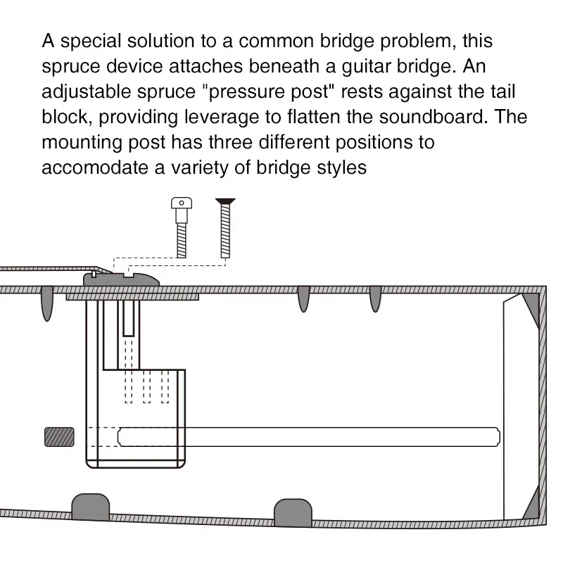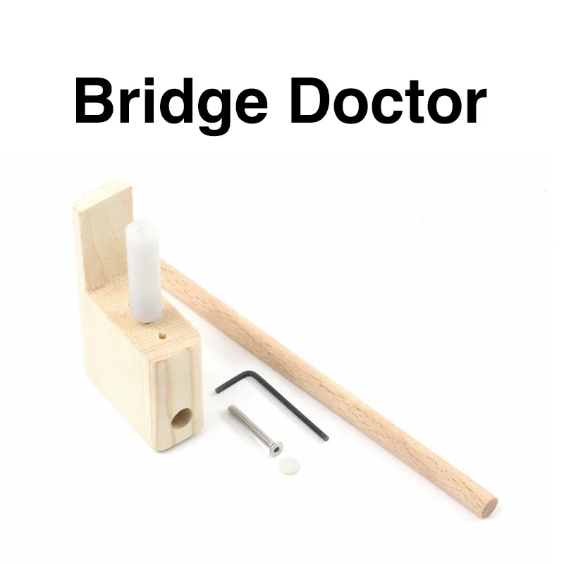 Enhance your guitar’s soundboard volume with this high-quality metal bridge doctor, available in brass pin mount and screw mount options. Designed for precise manufacturing and repair, this non-powered, chemical-free tool features a durable metal construction with a minimalist aesthetic. Its smooth, natural finish highlights craftsmanship and functionality, making it a reliable accessory for musicians and luthiers seeking to improve sound quality. Compact and easy to use, this tool includes a brass pin or screw mount along with a hex wrench for secure adjustments. Elevate your guitar repair toolkit and achieve a richer, more resonant sound with this essential, precision-engineered device.