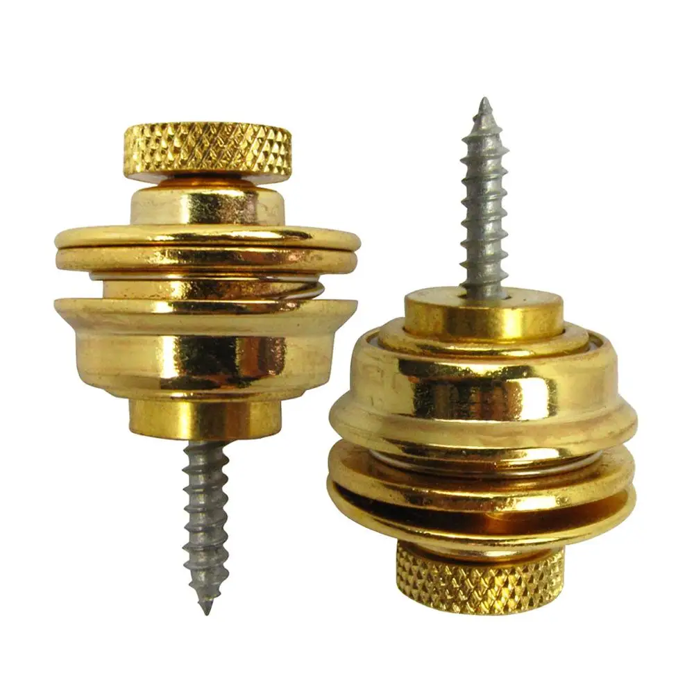 Enhance your guitar setup with this set of two durable, metal skidproof straplocks available in black, chrome, and gold. Designed for all electric guitars, bass, and acoustic models, these flat head strap locks feature a layered, stepped design for a modern aesthetic while ensuring a secure, stable connection. Crafted from high-quality metal, each set includes a strap button, cushion, and screw for easy, tool-free installation that replaces your original strap pegs without modifications. Enjoy quick assembly and effortless strap release, providing peace of mind during performances or practice sessions while adding a sleek, industrial touch to your instrument.