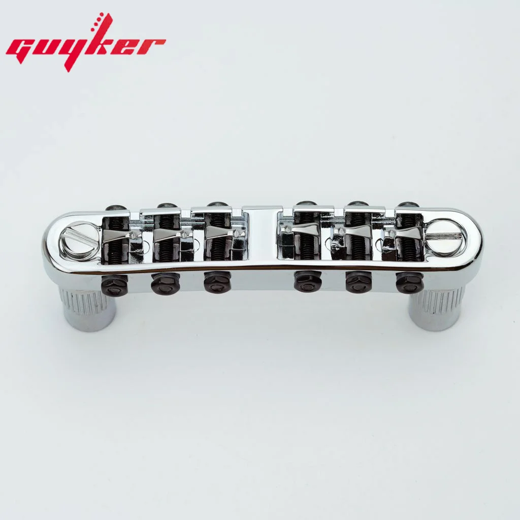 Elevate your guitar playing with this versatile Guitar Tune O Matic GM001 bridge, available in four stunning finishes: sleek black, polished chrome, bright gold, and subtle ghost. Crafted from durable metal, these bridges feature an elongated rectangular design with smoothly rounded edges for comfort and style. The top surface showcases multiple height-adjustment screws, allowing precise string height tuning, and rigid saddles to ensure optimal string stability and sound clarity. The different color options enable you to customize your guitar’s look, whether you prefer modern, luxurious, or understated aesthetics. Easy to install and compatible with 6-string guitars, this bridge is perfect for enhancing both the performance and visual appeal of your instrument. Experience high-quality craftsmanship in every detail and enjoy playing with confidence on a beautifully finished bridge that combines form and function seamlessly.