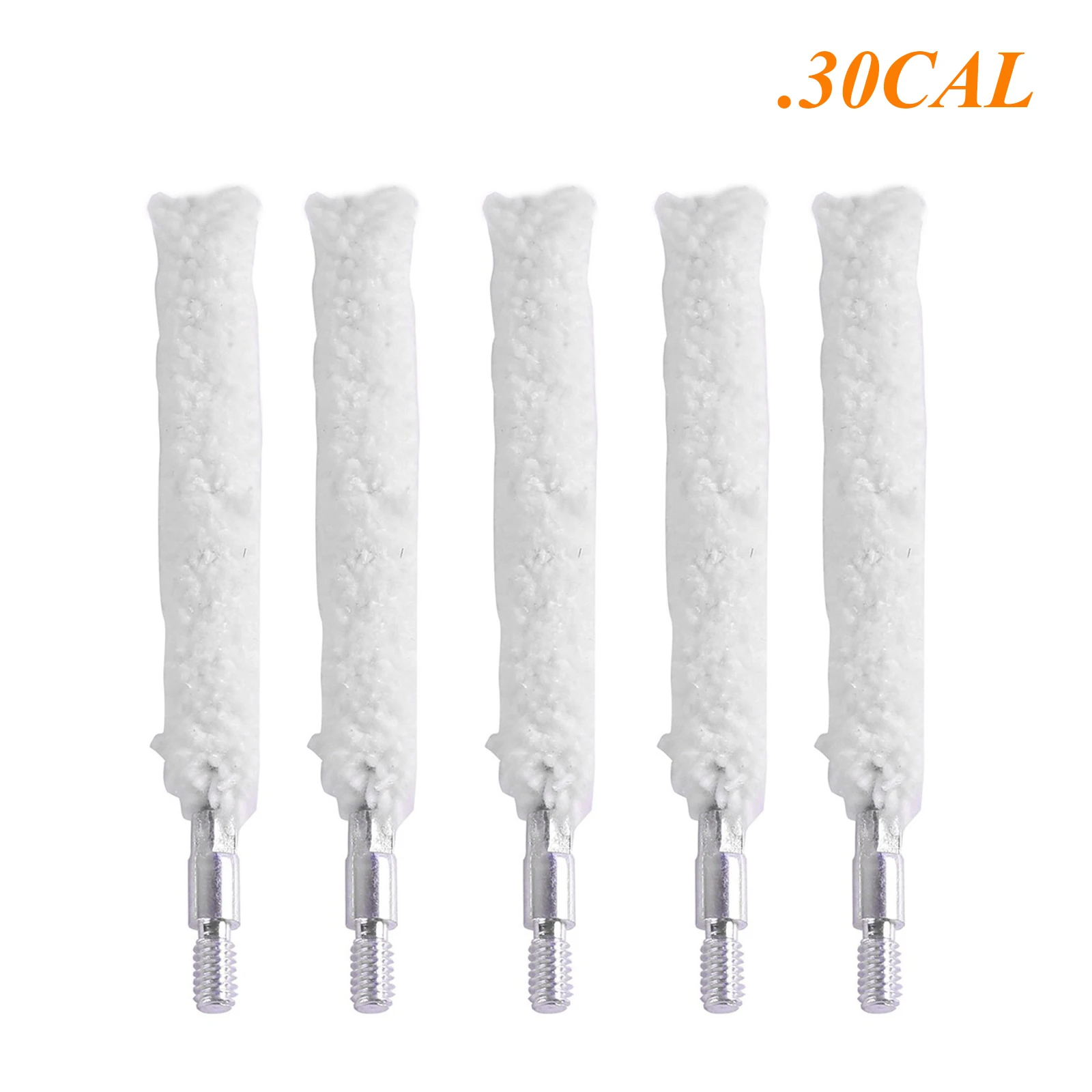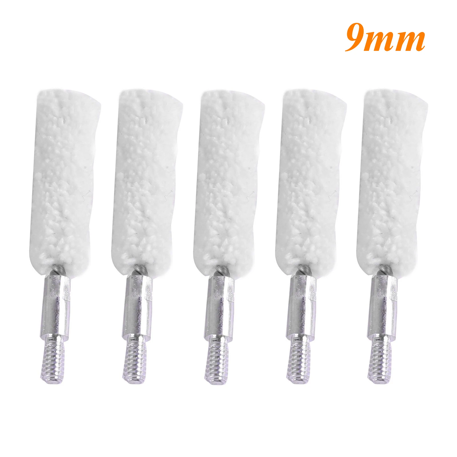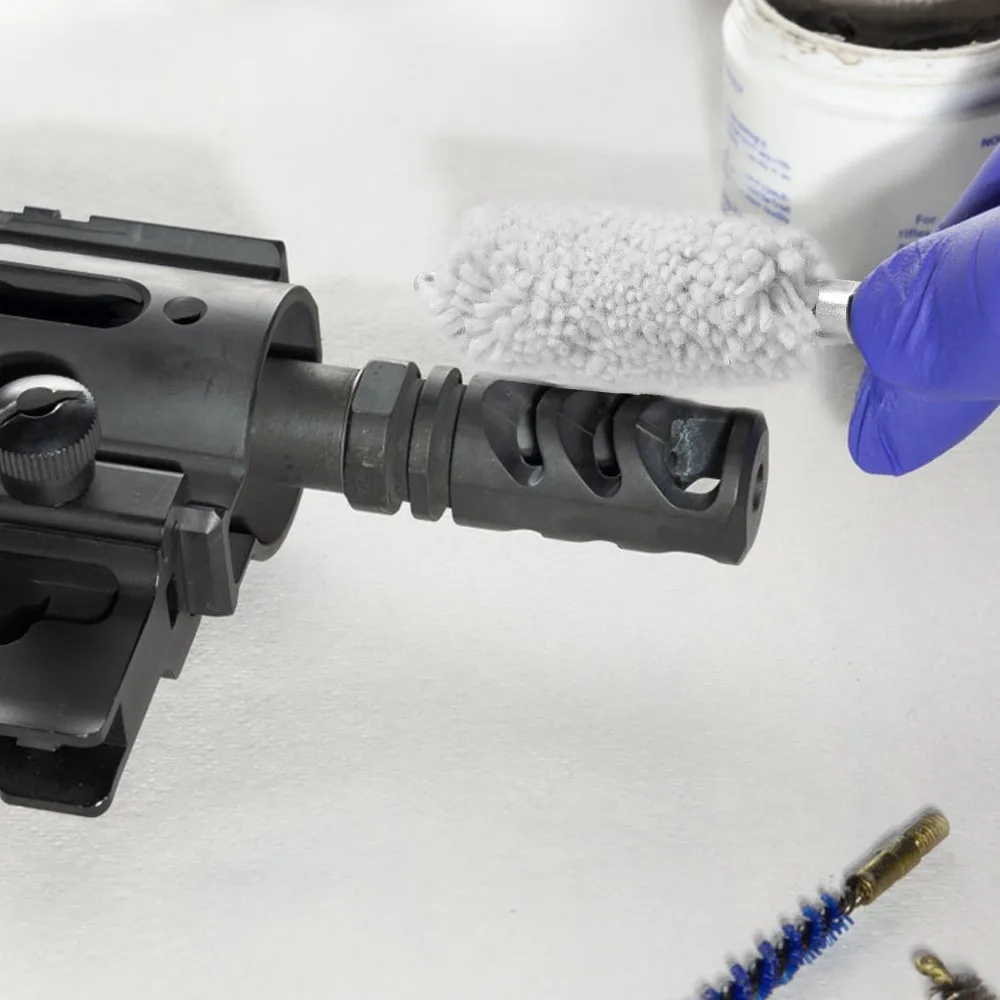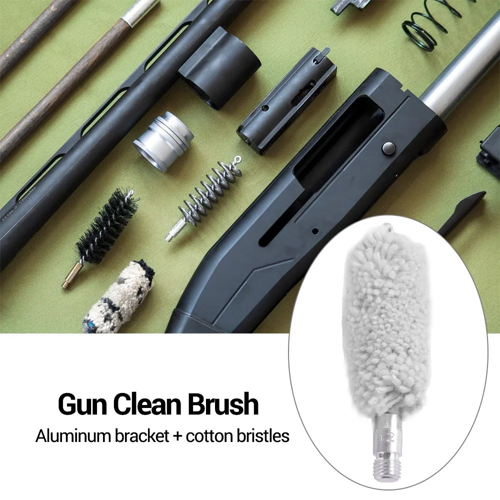 This set of five gun cleaning brush heads features cotton bristles mounted on aluminum holders, designed for rapid and thorough bore cleaning across various calibers and gauges, including 9mm, .30/.300/.308 cal, .22 cal, .45 cal, and 12GA. Each brush head is equipped with an 8-32 threaded attachment, except for the 12GA model, which has a 5/16″ * 26T thread. The cotton tufts vary in diameter from 7mm to 24.38mm and in length from 49mm to 82mm, providing precise and efficient cleaning for firearms. These durable, textured brushes are ideal for use with solvents, lubricants, and preservatives to maintain firearm accuracy and performance.