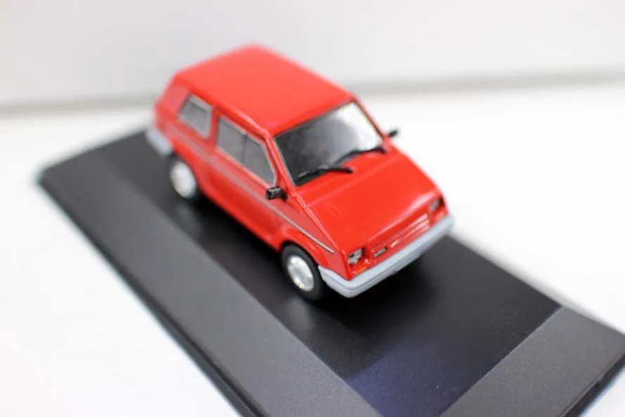 Experience the vintage charm of the GURGEL BR-800SL 1991 with this detailed 1:43 scale diecast model, measuring 11 cm long, 4 cm wide, and 3.8 cm high. Crafted from durable metal with plastic components, this model features a glossy red finish, smooth rounded edges, and a realistic compact, boxy design characteristic of early 1990s city vehicles. The transparent windows are subtly tinted, with delicately molded headlights and a minimalist front grille. Black wheels with silver hubcaps and detailed tread pattern complete the authentic look. Perfect for display, collectors, and enthusiasts, this non-electric model is suitable for ages 14 and above.