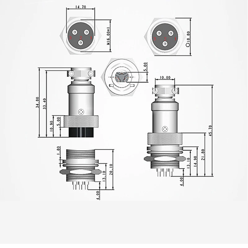 Imagine having a reliable, durable GX16 circular aviation socket or plug, seamlessly integrated into your project. Crafted with a sleek, round design, these connectors feature a polished metal shell available in classic silver tone or modern black finish. Their threaded 16mm diameter ensures a secure fit for wire panel connections, offering versatility with various pin configurations from 2 to 8 pins. Rated at 125V and capable of withstanding temperatures from -25°C to 80°C, these connectors promise stability in demanding environments. Whether you're upgrading equipment or building a new setup, these connectors provide a professional finish and reliable performance. Easy to install, they make your connections both safe and visually appealing, giving you peace of mind with every use.