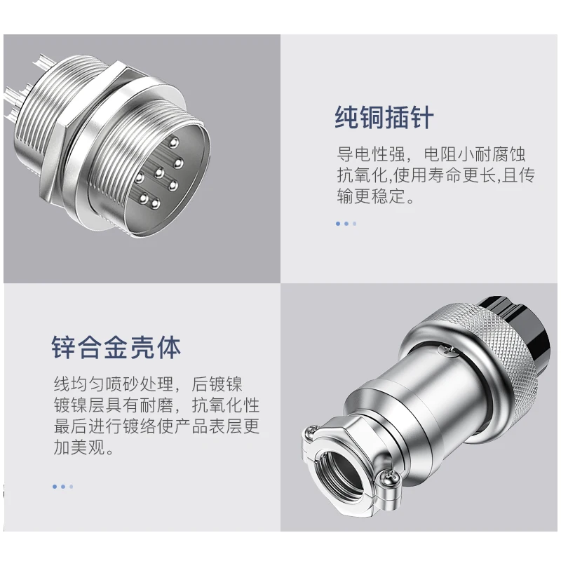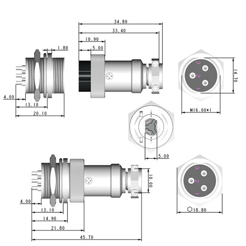 Experience unmatched durability and reliable performance with this professional industrial GX16 connector set. Designed for high-reliability applications, these connectors feature a sleek, metallic silver finish complemented by gold-plated contact points that resist corrosion and ensure optimal conductivity. The set includes both male and female components, available in models with 2 to 10 pins, tailored to meet your specific needs. Made of pure copper, these connectors offer exceptional strength and longevity, perfect for aviation, industrial, and demanding electrical environments. Their robust construction, precise threading, and textured knurled grip enhance usability, providing a secure connection every time. Combine functionality with a professional aesthetic that emphasizes high-quality craftsmanship and reliability for all your electrical projects.