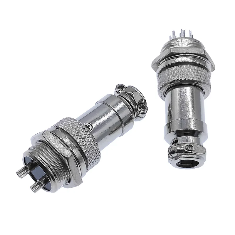 Experience reliable electrical connections with the this GX16 cable connector series, crafted from durable metal for enhanced longevity and performance. Featuring a sleek silver metallic finish, these connectors combine a professional look with rugged durability. The cylindrical body is textured with knurled grips, providing a secure handling experience during installation and maintenance. Designed for versatility, this series includes male and female plugs with varying pin configurations from 2 to 10 pins, accommodating different wiring needs. Operating at 48V, these connectors are ideal for industrial, electronic, or electrical applications that demand high-quality, corrosion-resistant, and dependable connectivity. Their compact, robust design ensures a seamless, secure connection every time, boosting your system’s reliability.