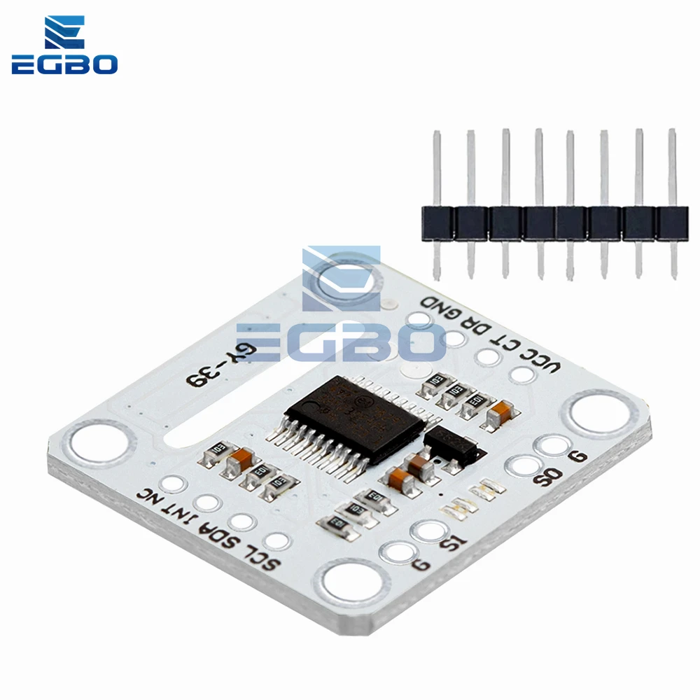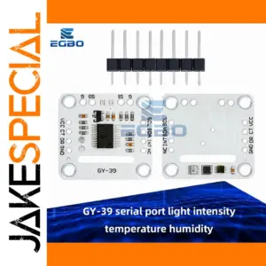 The GY-39 Integrated Sensor Module offers precise measurement of light intensity, temperature, humidity, and air pressure through a serial port interface, ideal for weather forecasting and environmental monitoring. Operating at 3V to 5V with a dissipation power of 0W, this sleek SMD module features a white rectangular PCB with a black central IC and a contrasting matte black 10-pin male header, combining a minimalist design with high-tech functionality. Suitable for continuous use within 0°C to 80°C, it is perfect for integration into various electronic projects, providing reliable performance and customizable configurations for advanced sensor applications.