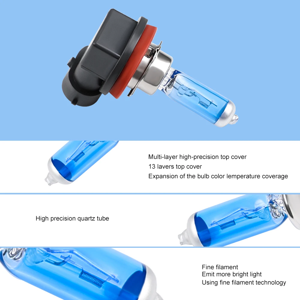 - Designed with a blue-coated quartz glass tube, emitting 6000K white light for maximum brightness and a high-tech appearance. Perfect for enhancing nighttime visibility and vehicle style.