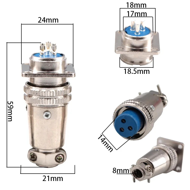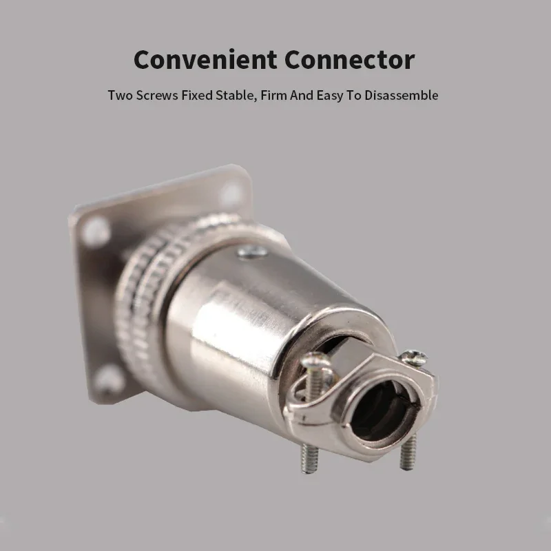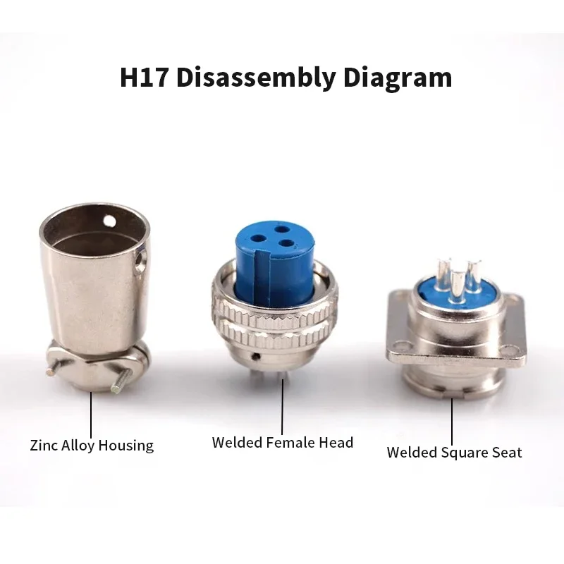 Experience reliable connectivity with this high-quality H17 welded connector, rated at 20A and designed for engraving machine spindle motors. Available in 2, 3, 4, or 5-pin configurations, each featuring a sleek square aviation plug with a 17mm opening size. Crafted from durable metallic material with a polished, shiny surface, these connectors combine modern style with industrial precision. The ribbed or knurled middle section ensures easy handling, while the cylindrical base with small securing screws guarantees a secure fit. Operating across voltage ranges from 1V to 12V and certified with a 3C safety certificate, these connectors are ideal for low-voltage applications requiring robust and reliable connections.