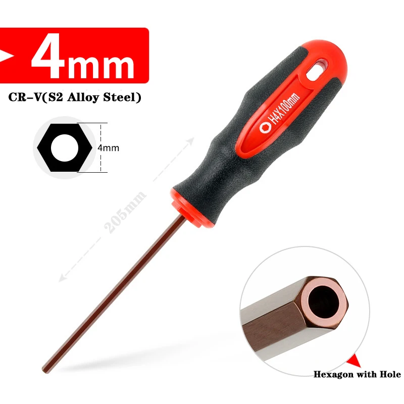 Experience enhanced precision and comfort with this high-quality Hex Screwdriver set, featuring sizes 3mm, 4mm, 5mm, and 6mm. Crafted from durable chrome-vanadium steel with HRC56-60 hardness, it ensures reliable performance for your DIY or professional projects. The multifunctional, non-slip handle provides excellent grip, making screw-driving effortless and safe. Whether you’re working on furniture, appliances, or intricate assemblies, this screwdriver is a trusted tool that ensures accuracy every time. Compact and easy to handle at 205mm overall length, it’s designed for convenience and durability to help you complete your tasks efficiently.