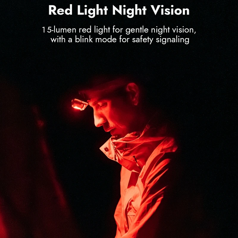 - Red night vision mode emits 15 lumens, ideal for preserving night vision, safety signaling, and discreet illumination during night activities.