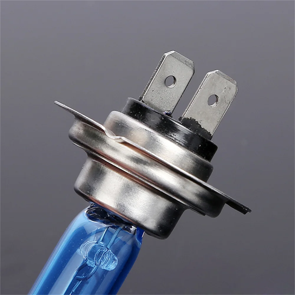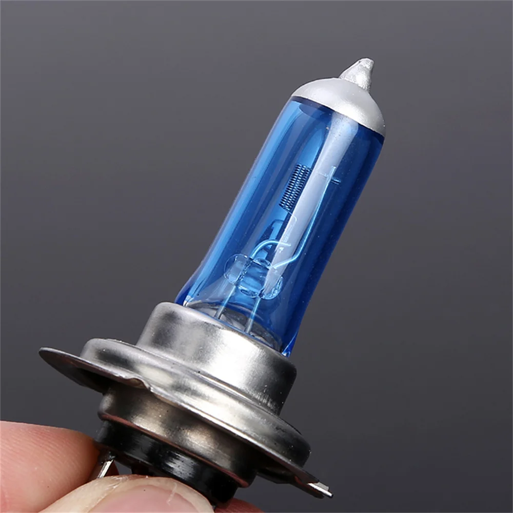 Upgrade your vehicle’s lighting with this set of two H7 halogen bulbs, each rated at 100W and 55W with a 12V power supply and a color temperature of 6000K, emitting a super white, high-brightness light. Featuring a sleek, transparent cylindrical glass enclosure with a subtle bluish tint, these bulbs provide a modern and energetic appearance. The durable metal base with two prongs ensures easy plug-in installation, making them suitable for universal vehicle models, external headlights, and fog lights. Designed for quick, hassle-free replacement, these bulbs guarantee bright, reliable illumination for enhanced safety and visibility on the road.