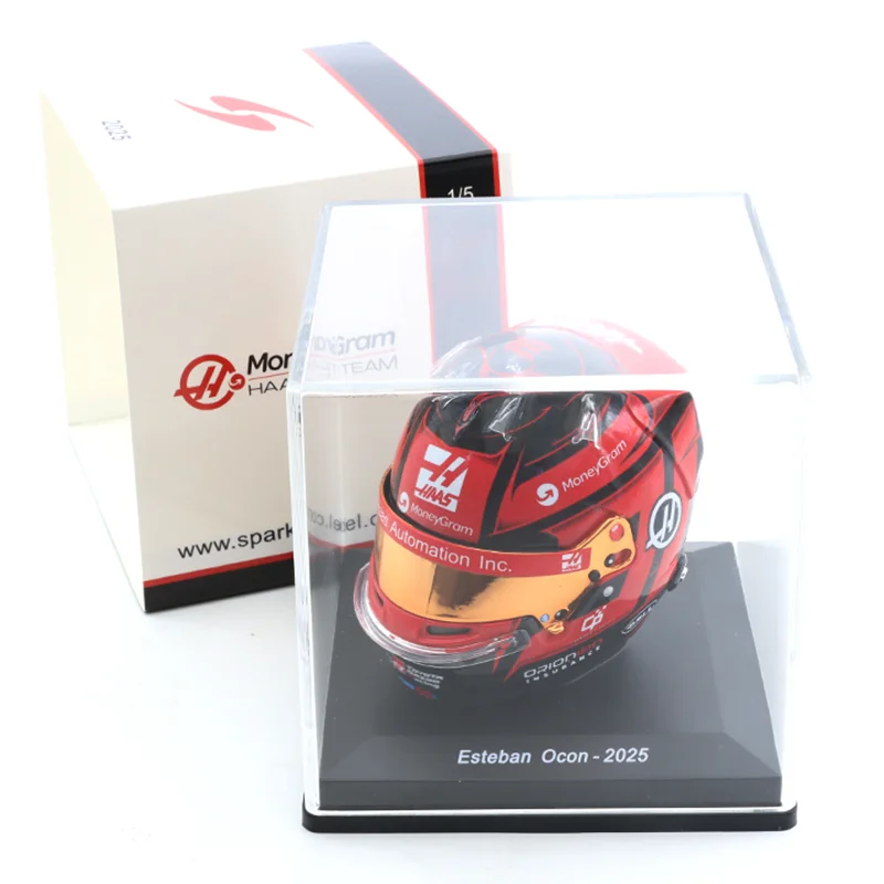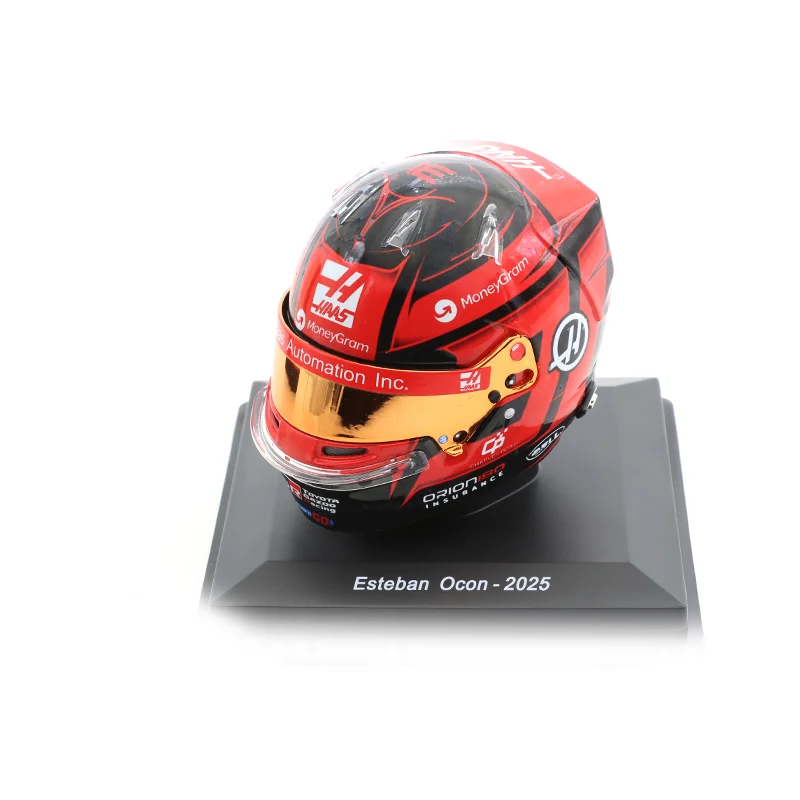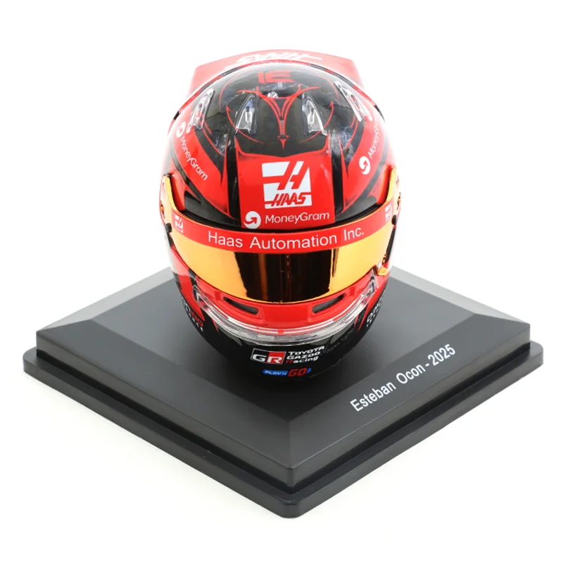 - This 1:5 scale resin miniature accurately depicts the 2025 Haas Team Ocon helmet with vibrant red and black detailing for a bold racing look.