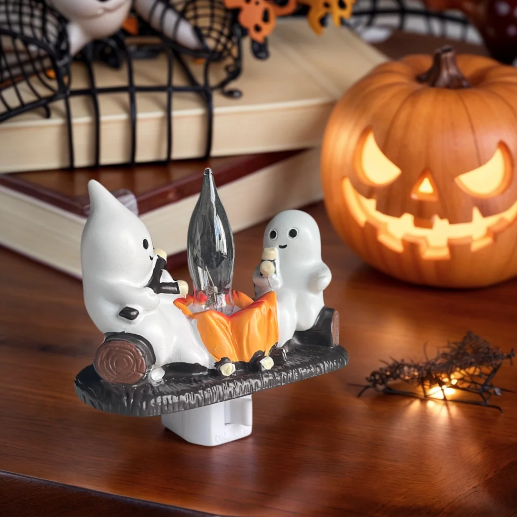 - This decorative night light features a resin sculpture with a vintage supernatural style and playful, soft contours, creating a cozy Halloween ambiance. The charming ghosts evoke friendliness and fun for any setting.