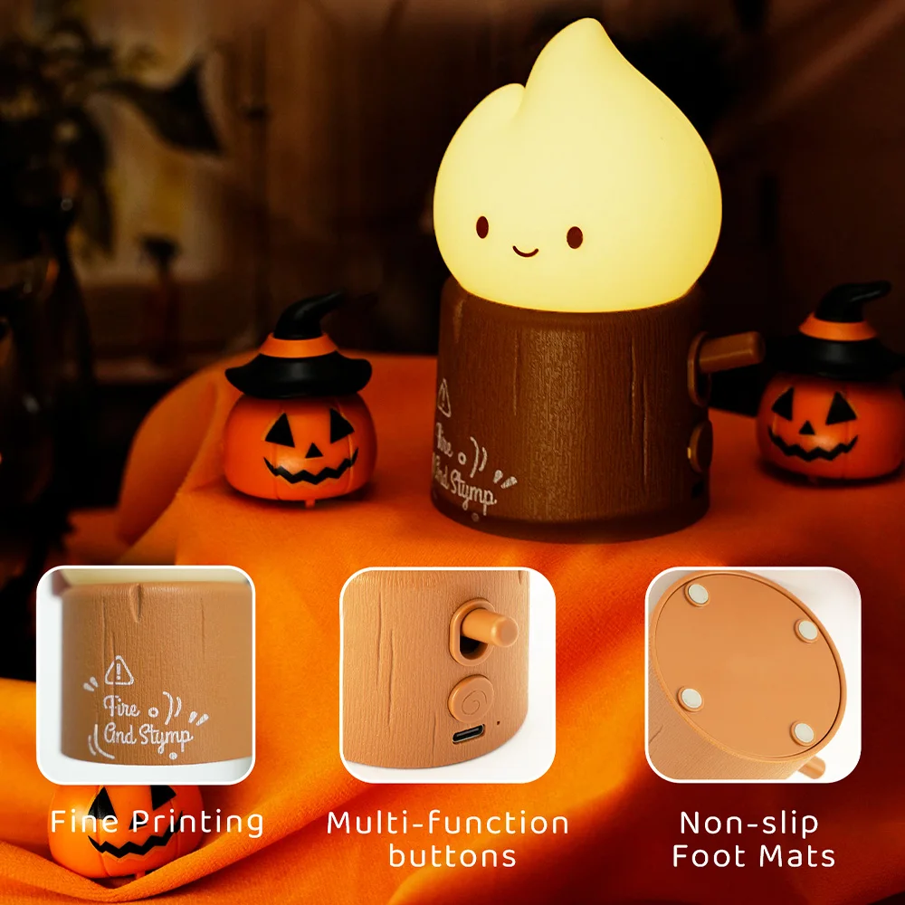 Envision adding a warm, festive glow to your home with this adorable Halloween-themed night light. Featuring playful shapes like drop-shaped lanterns with smiling cartoon faces, traditional jack-o'-lanterns with carved expressions, and smaller pumpkin figures adorned with witch hats, it creates a cozy, inviting atmosphere. Crafted from soft, diffused materials, the light emits a gentle, inviting orange glow that enhances your seasonal décor. Perfect for indoor spaces, candles, or creating a spooky yet friendly ambiance, this rechargeable LED night light transforms your festive environment effortlessly. Its vibrant colors “Ghost” and “Tree” bring a whimsical touch, making it a charming addition to your holiday decorations. Enjoy a magical, comforting atmosphere with this delightful piece.