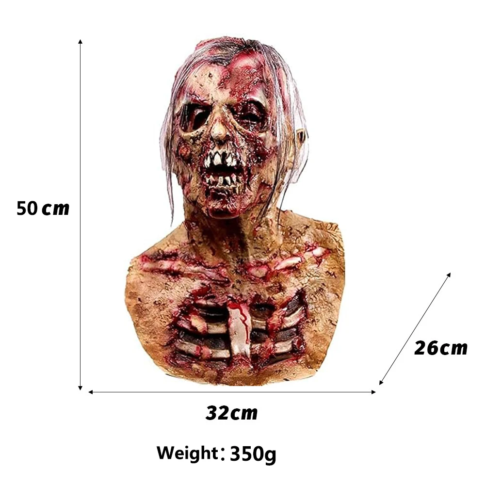This Halloween Scary Walking Dead Zombie Mask is the ultimate accessory for your next costume party or festive event. Crafted from 100% natural latex, this mask provides a realistic appearance that showcases a ghoulish face with deep-set, hollow eyes. Its lifelike design includes various textures that mimic decayed skin, accentuated with blood splatters for added horror. It weighs 350g, ensuring comfort while you embrace the eerie theme of Halloween, Christmas, Easter, or birthday parties. With openings for visibility and breathability, you'll feel both spooky and comfortable, making it perfect for cosplay and festive fun.