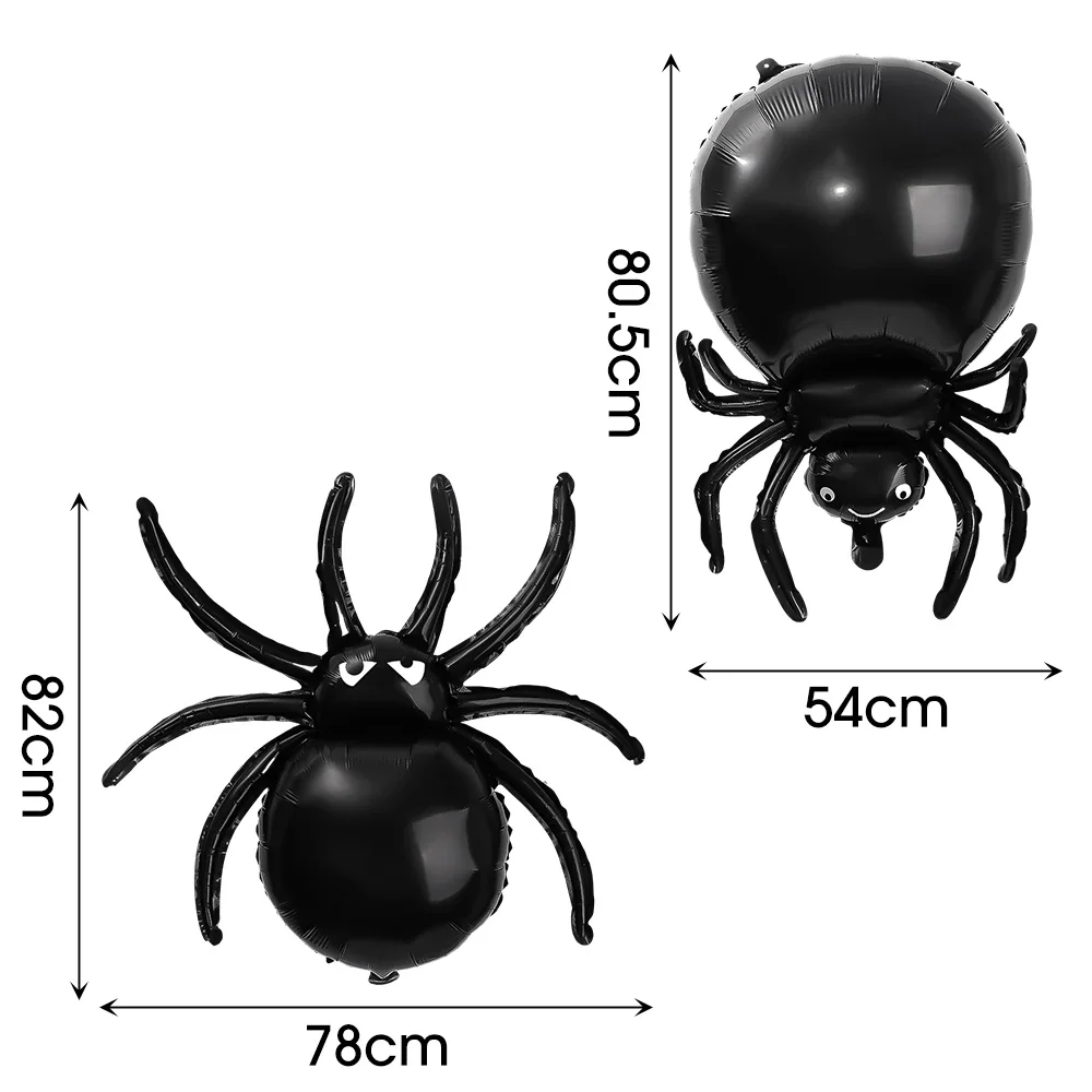 Transform your Halloween or themed celebration with this set of two black spider-shaped aluminum foil balloons. The large spider measures approximately 54 x 80.5 cm, featuring a rounded body with detailed, articulated legs for a lifelike appearance. The smaller spider is about 78 x 82 cm, with a rounder body and slender limbs that add a playful, spooky charm. Made from high-quality, durable foil with a glossy metallic finish, these balloons reflect light beautifully and can be deflated and reused for multiple occasions. Perfect for creating an eye-catching centerpiece for Halloween, birthdays, or holiday parties, they add an impressive and festive touch to any decor.