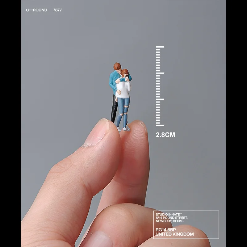 Experience the beauty of affection with this meticulously crafted hand-painted miniature figure model of a couple. Standing at approximately 2.6 cm tall and designed in a 1:64 scale, this charming decoration portrays a loving embrace that perfectly encapsulates a romantic moment. The male figure, dressed in a blue jacket and black pants, contrasts beautifully with the female figure's casual white long-sleeve shirt and distressed jeans. Made from high-quality resin, each figure showcases intricate detailing and a polished finish that draws attention. Perfect for home decor or as a photography prop, its robust construction and flat base ensure a stable display while adding artistic flair to any miniature scene.