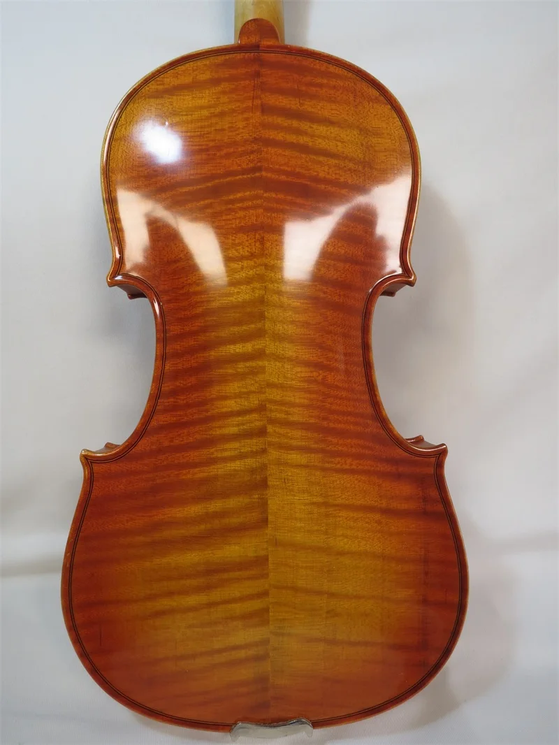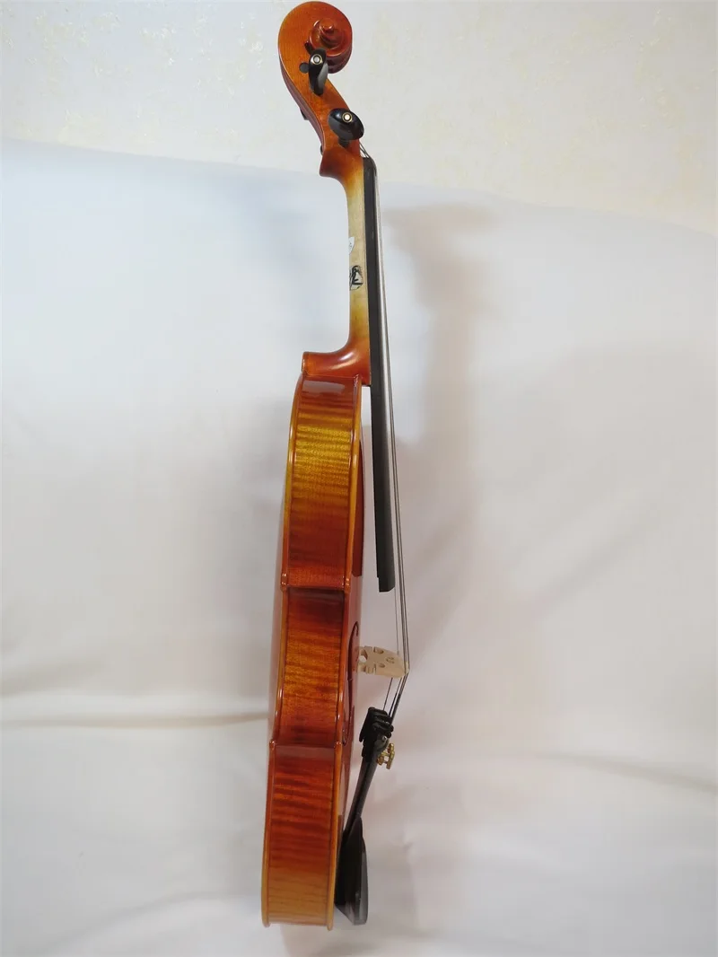 Experience the rich, resonant sound of this expertly crafted 14-inch viola, built with a European spruce top with even grain and a flamed maple back, neck, and ribs, all hand-carved by master luthier Mr. Song and apprentices. The naturally dried woods, over 20 years old, produce a powerful, sweet tone with a heavy undertone, complemented by a beautiful contour and glossy finish that highlights the intricate flame figure. Equipped with ebony fittings, a quality bridge, four fine tuners, and a good bow, it comes with a free oblong foam case. This excellent-condition instrument combines craftsmanship, aesthetic elegance, and outstanding tonal performance, making it a perfect choice for serious players and collectors alike.