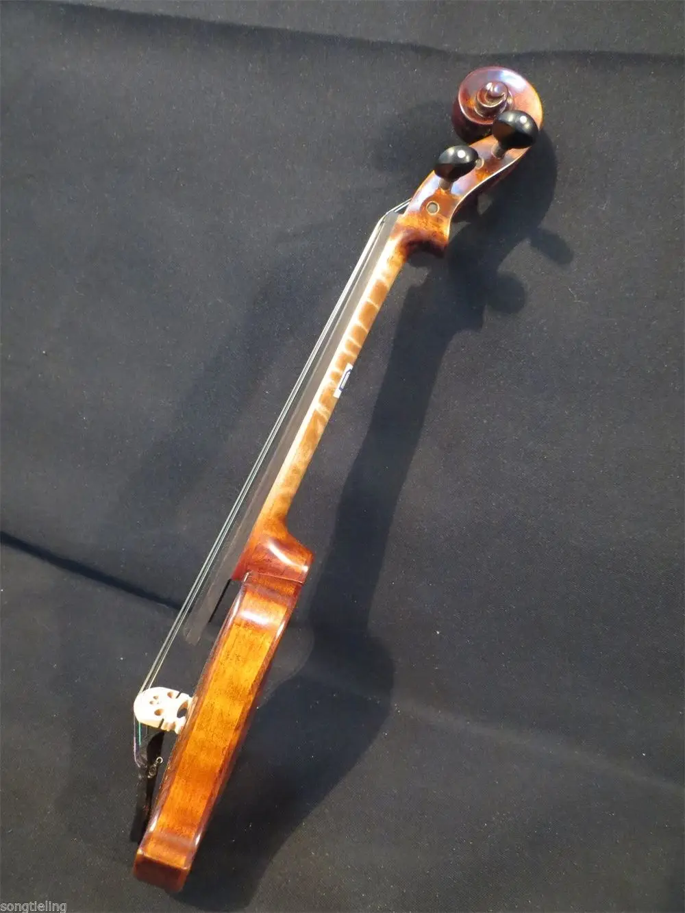 Experience the rich, resonant sound of this meticulously handcrafted 5 3/4-inch violin, measuring 15 1/4″ in overall length with a body length of 5 3/4″ and a scale length of 9 3/8″. Crafted from European spruce with even grain top and beautifully flamed maple for the back, neck, and ribs, all air-dried for over 12 years, it exudes quality and artistry. Features include an ebony fingerboard and pegs, a fine spruce top, and a dark wood tailpiece, making this instrument ideal for both performance and collection. Its elegant, traditional design showcases superior craftsmanship and fine materials.