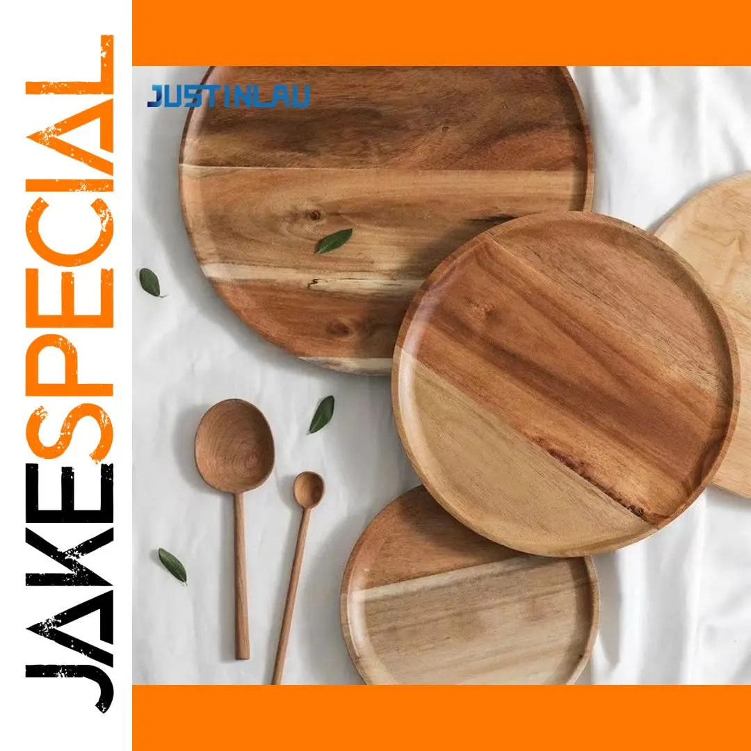 Elevate your serving style with these handcrafted acacia wood round platters available in 15 cm, 20 cm, and 25 cm diameters, each with a 1.5 cm height. Featuring a simple, natural, and elegant design, these durable plates showcase the beautiful wood grain and subtle knots, enhancing your presentation of salads, fruits, desserts, or bread. Crafted through a precise mechanical process, they are finished with a smooth surface and a light wooden scent, emphasizing craftsmanship and rustic charm. Designed for universal use, these versatile serving trays bring warmth and sophistication to any table setting, making each meal feel special and inviting.
