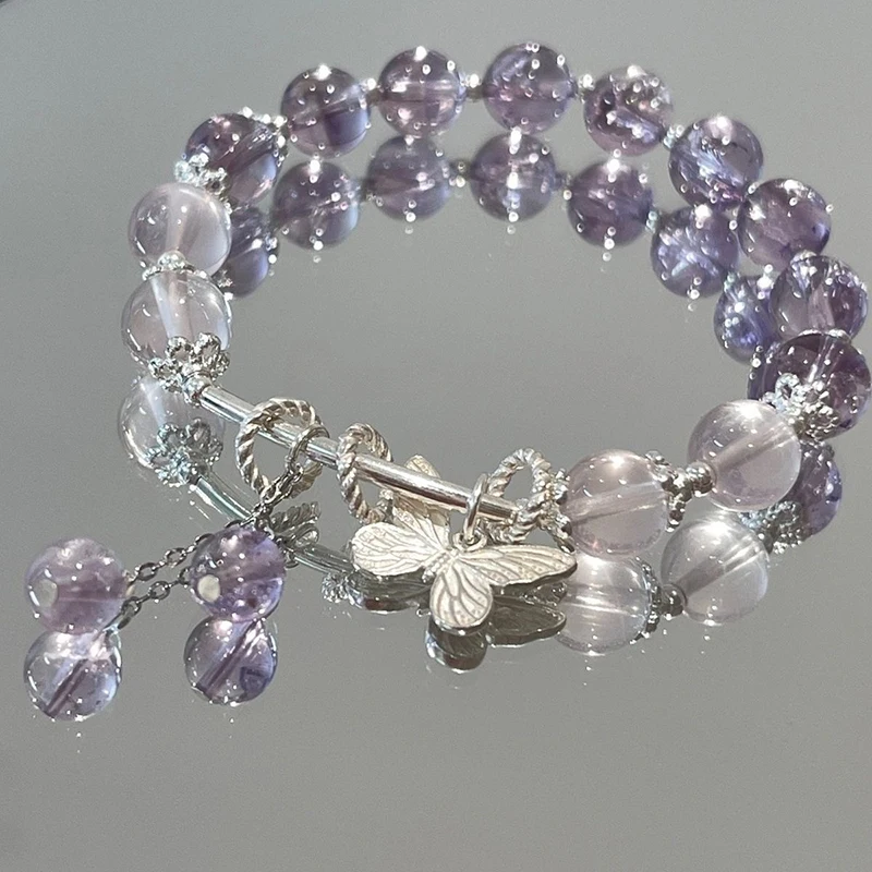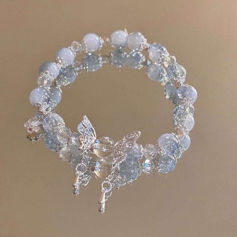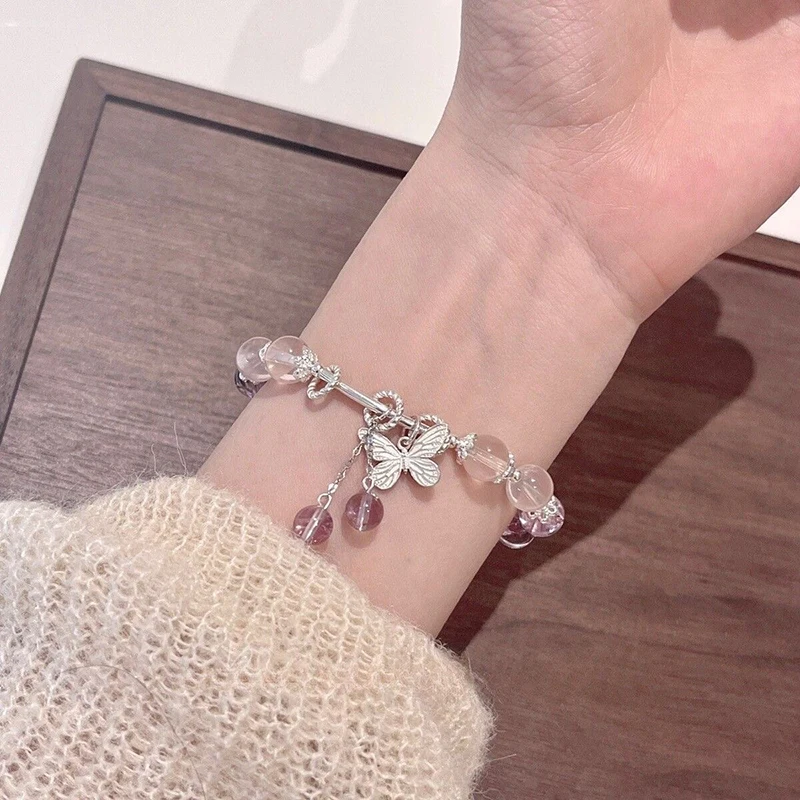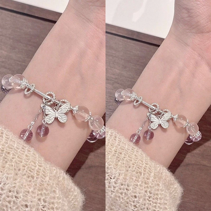 Experience elegant versatility with this handcrafted alloy beaded bracelet, available in nine stunning color options labeled A1 through A9. Featuring round, semi-translucent beads with a subtle iridescent sheen and detailed silver-tone butterfly charms, it exudes charm and femininity. The adjustable chain and link design ensure a comfortable fit for various wrist sizes, making it perfect for everyday wear or special occasions. Measuring with a slight manual tolerance of 1-3mm, this delicate accessory complements any outfit and makes a thoughtful gift for loved ones. Its refined style and high-quality craftsmanship make it an essential addition to your jewelry collection.